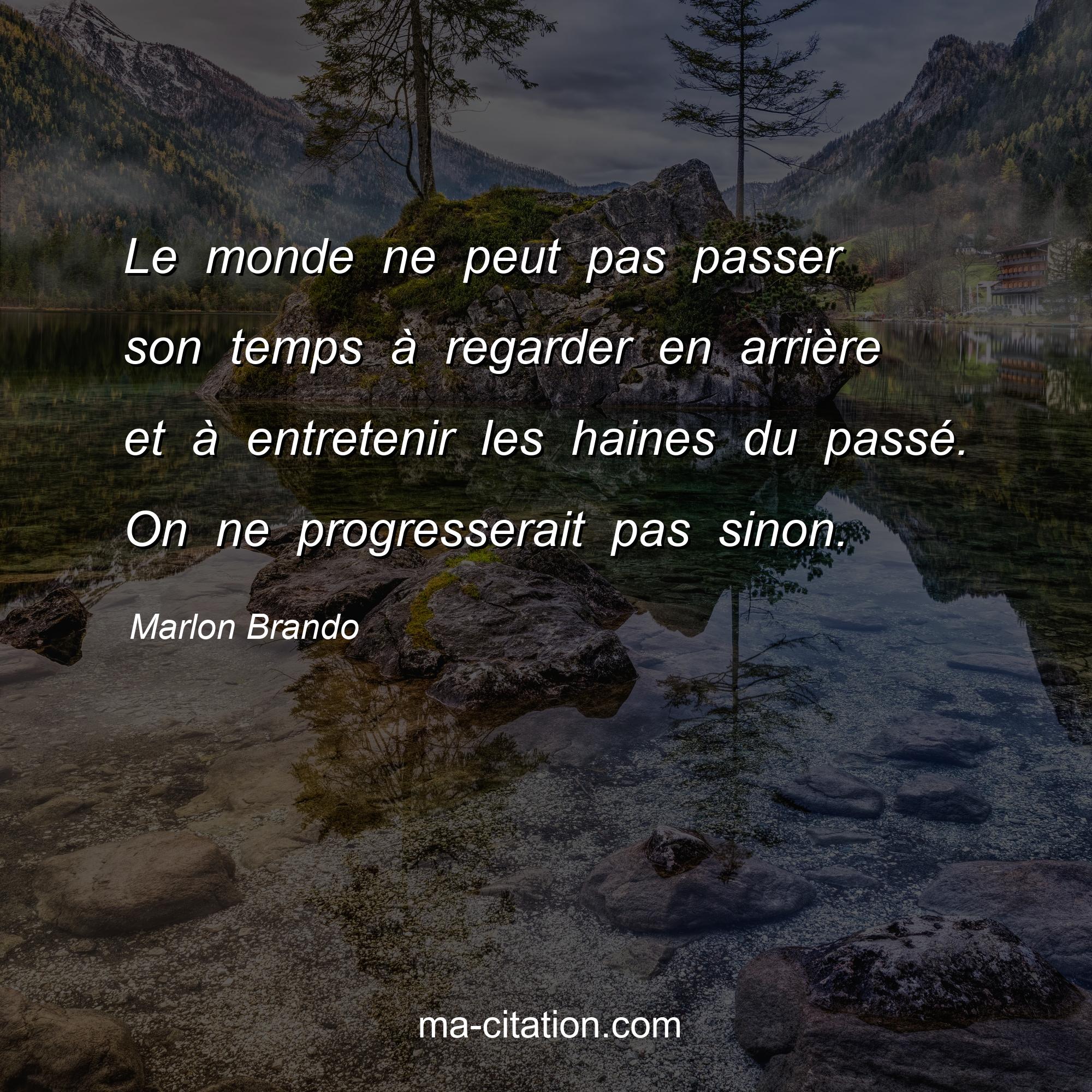 Citation sur la vie de Marlon Brando :Le monde ne peut pas passer son temps à regarder en arrière et à entretenir les haines du passé. On ne progresserait pas sinon.