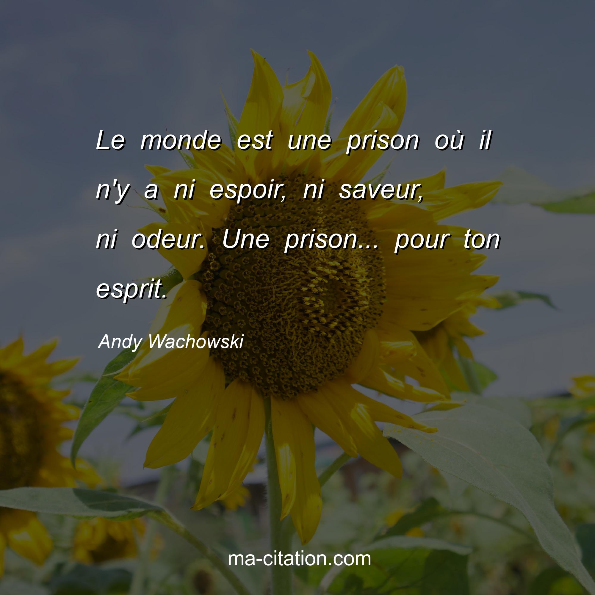 Citation sur la vie d'Andy Wachowski :Le monde est une prison où il n'y a ni espoir, ni saveur, ni odeur. Une prison... pour ton esprit.
