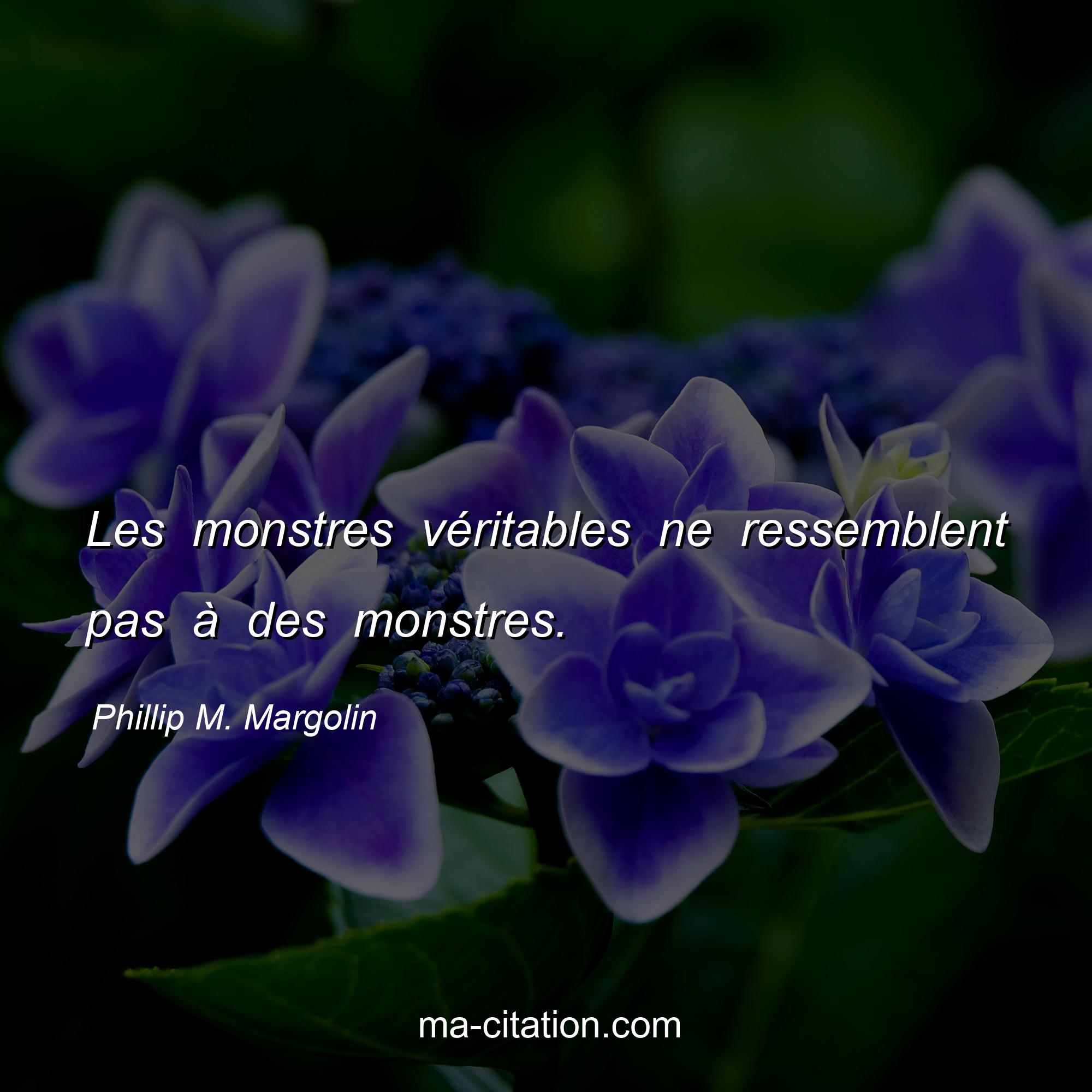 Citation sur la vie de Phillip M. Margolin :Les monstres véritables ne ressemblent pas à des monstres.