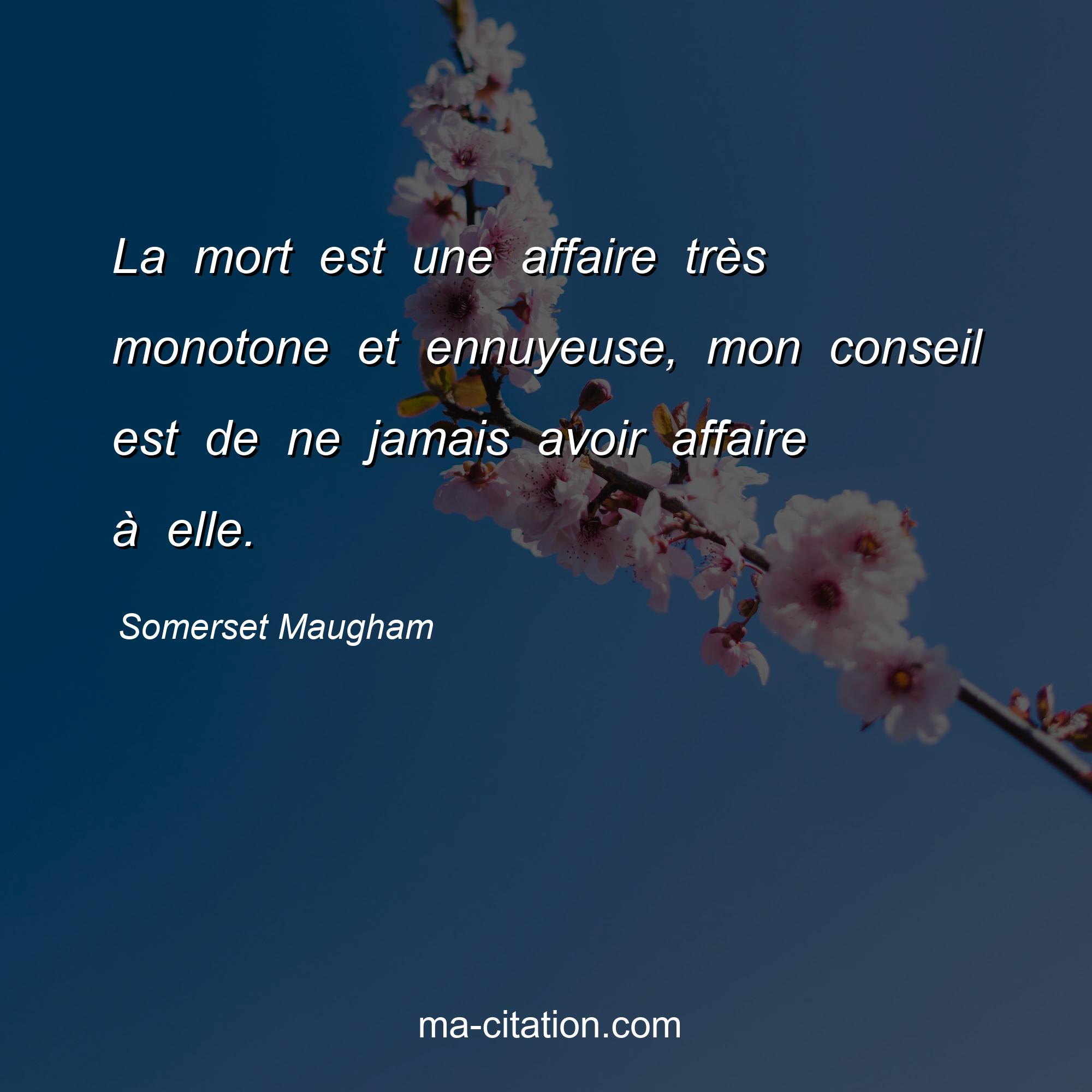 Citation sur la vie de Somerset Maugham :La mort est une affaire très monotone et ennuyeuse, mon conseil est de ne jamais avoir affaire à elle.