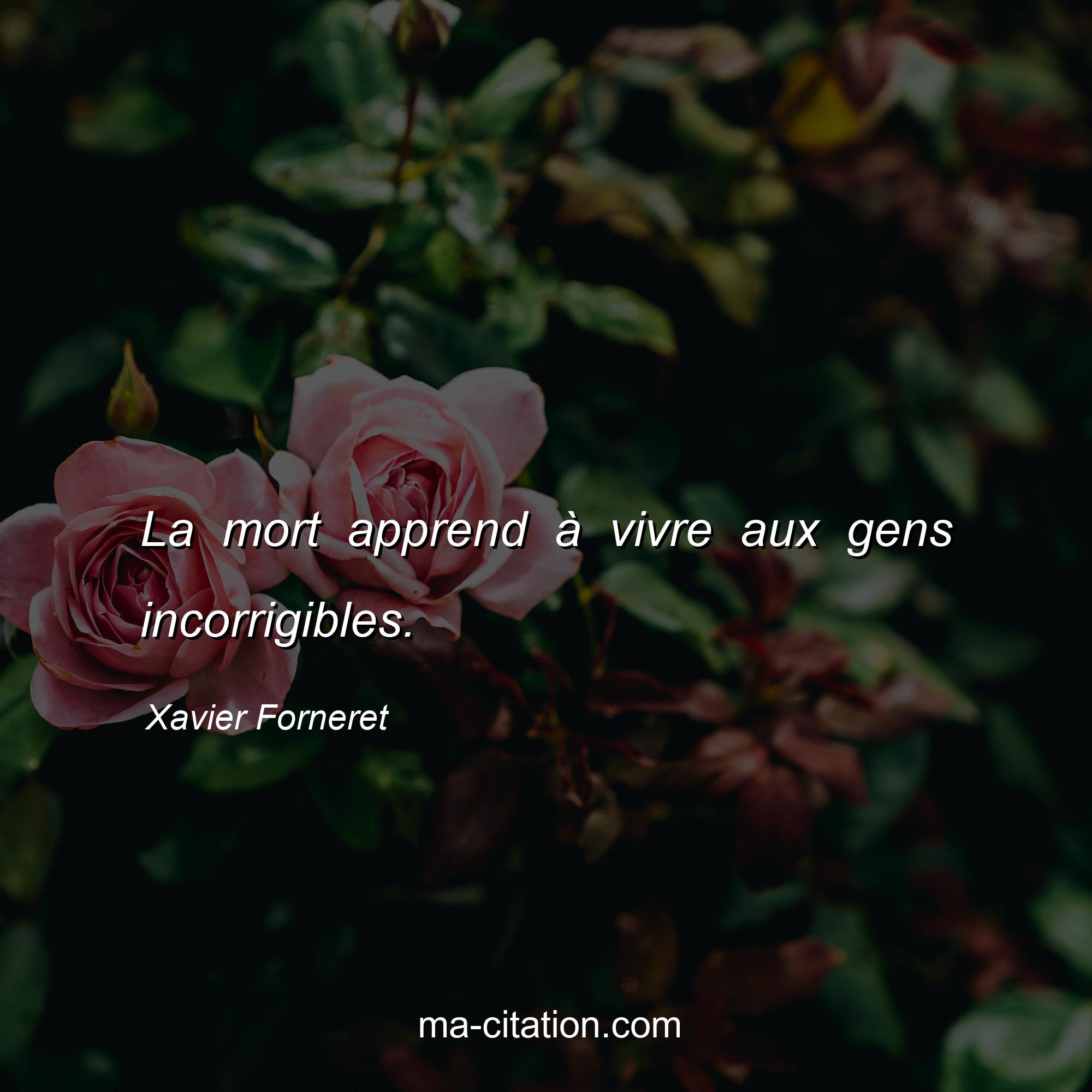 Citation sur la vie de Xavier Forneret :La mort apprend à vivre aux gens incorrigibles.