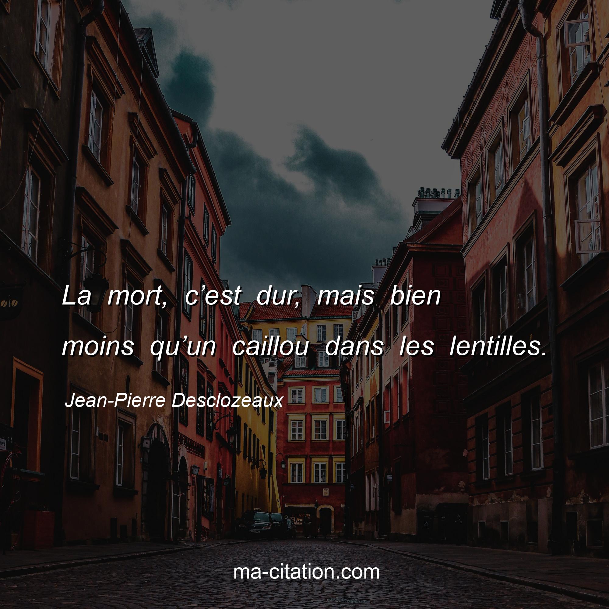Jean-Pierre Desclozeaux est l'auteur de la citation sur la vie "La mort, c’est dur, mais bien moins qu’un caillou dans les lentilles.".