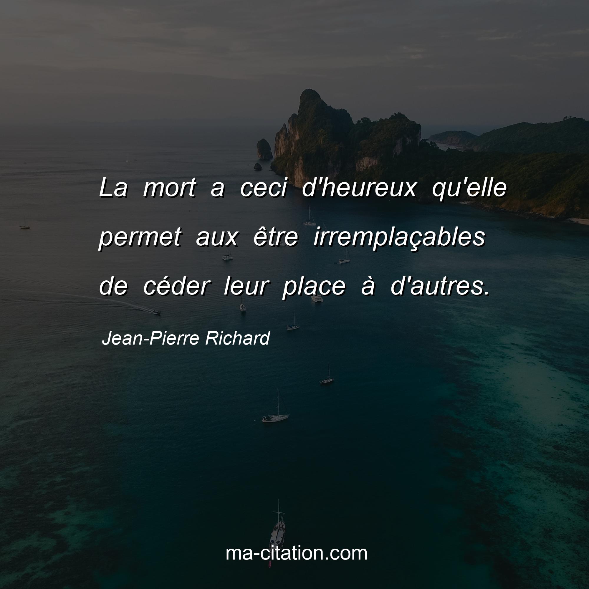 Citation sur la vie de Jean-Pierre Richard :La mort a ceci d'heureux qu'elle permet aux être irremplaçables de céder leur place à d'autres.