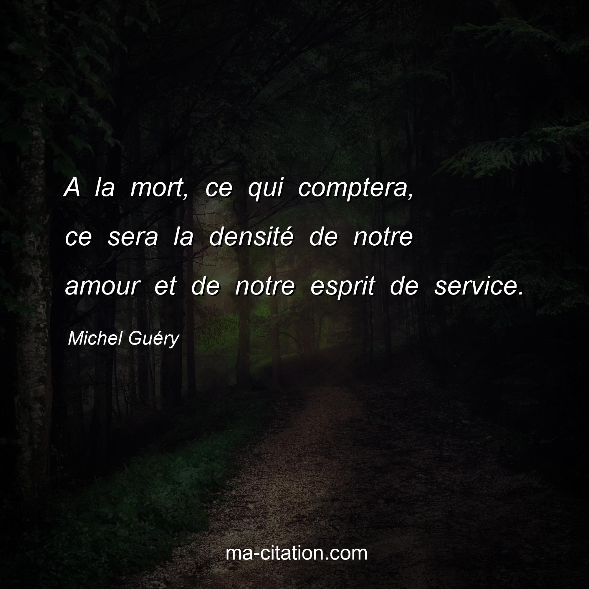 Michel Guéry est l'auteur de la citation sur la vie "A la mort, ce qui comptera, ce sera la densité de notre amour et de notre esprit de service.".