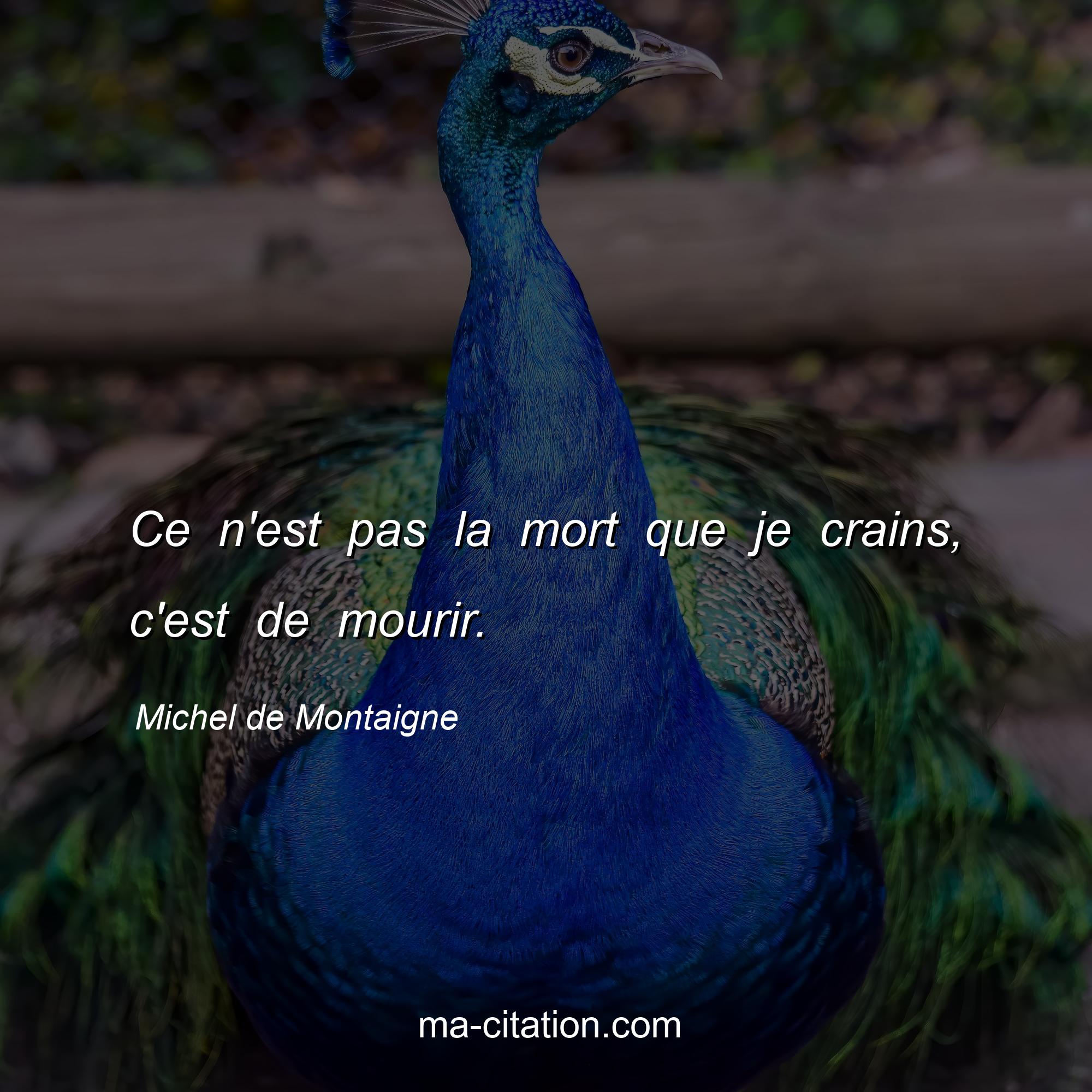 Citation sur la vie de Michel de Montaigne :Ce n'est pas la mort que je crains, c'est de mourir.