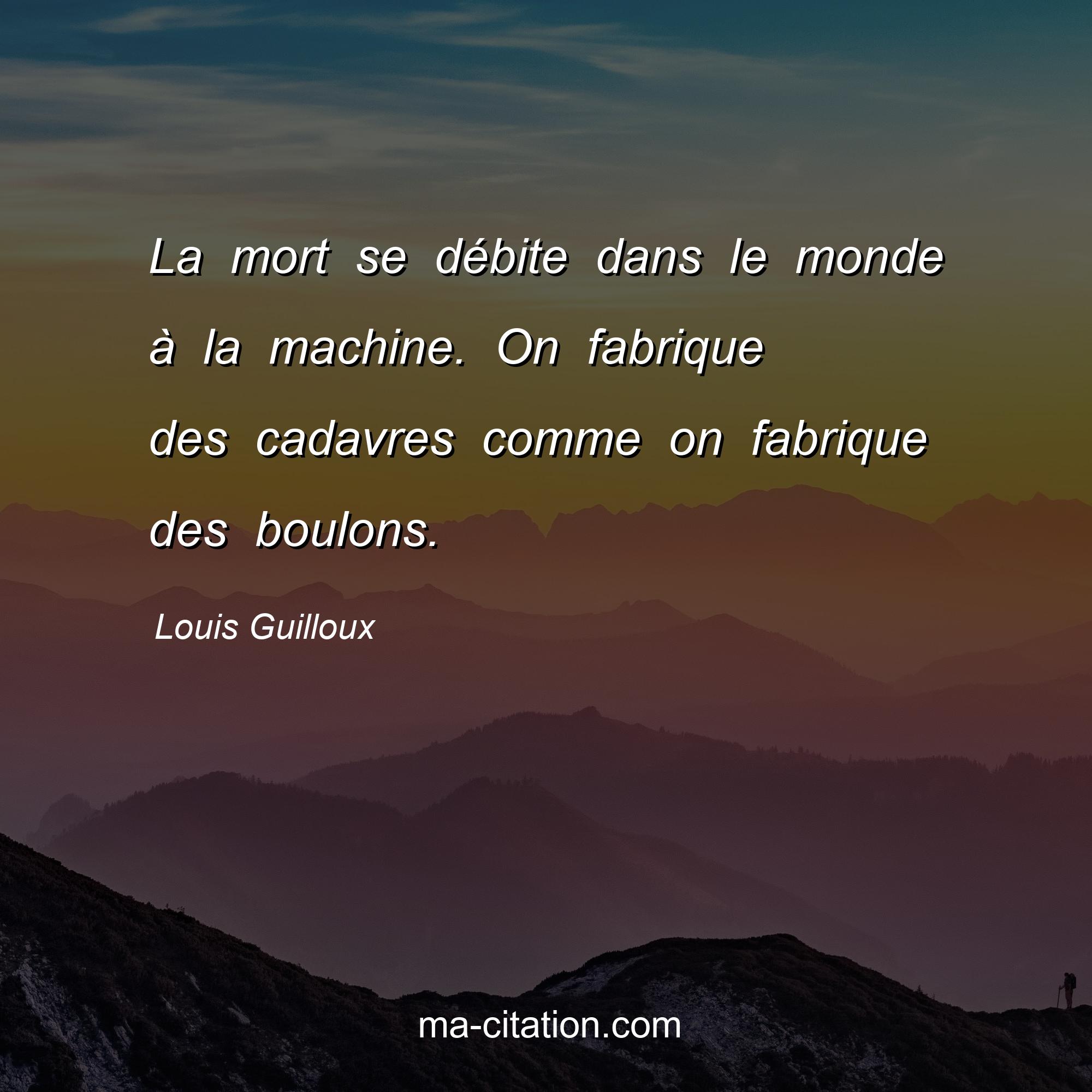 Citation sur la vie de Louis Guilloux :La mort se débite dans le monde à la machine. On fabrique des cadavres comme on fabrique des boulons.
