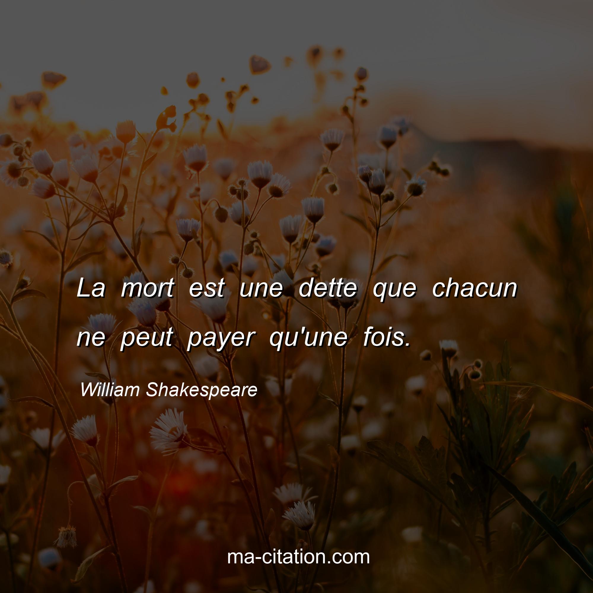 Citation sur la vie de William Shakespeare :La mort est une dette que chacun ne peut payer qu'une fois.