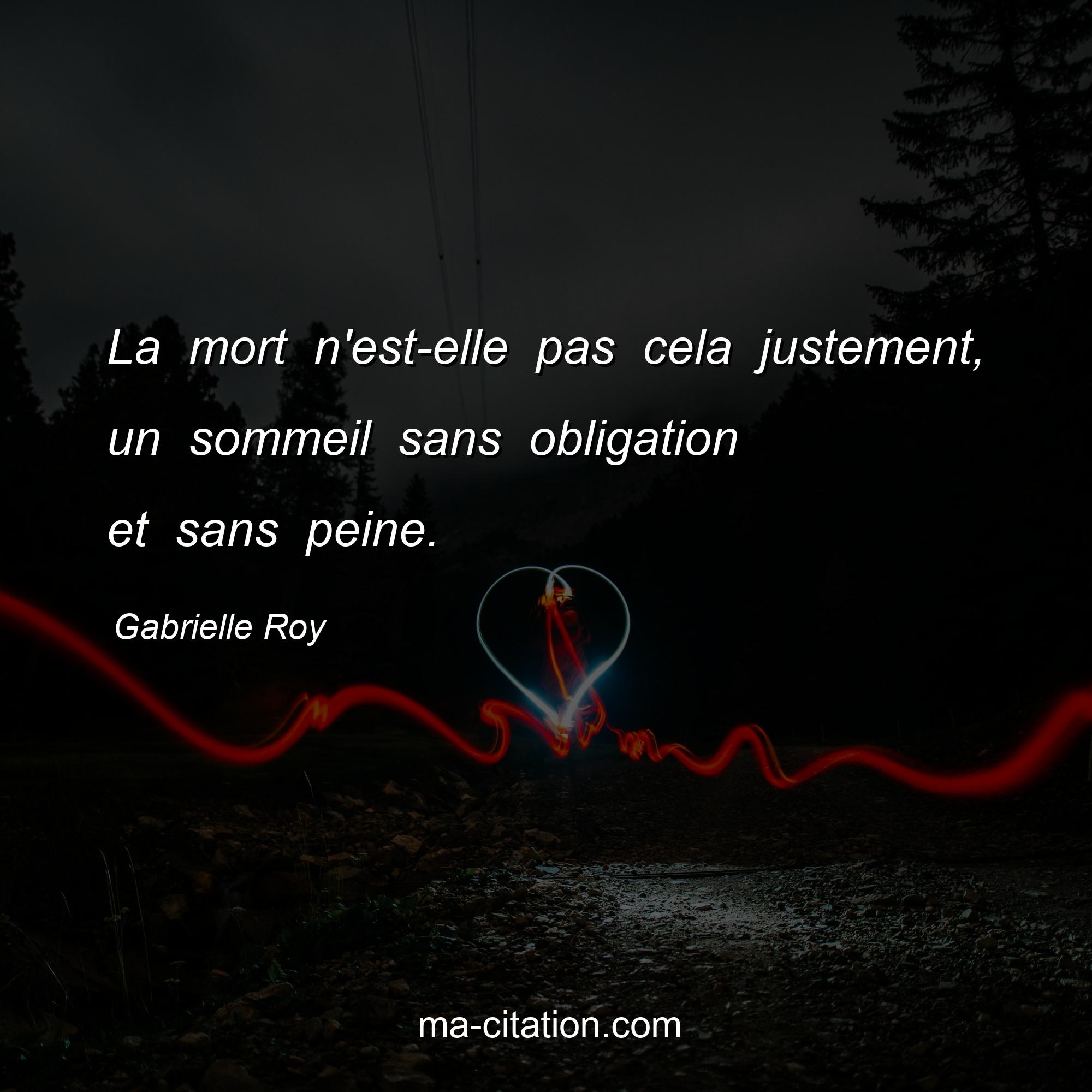 Citation sur la vie de Gabrielle Roy :La mort n'est-elle pas cela justement, un sommeil sans obligation et sans peine.