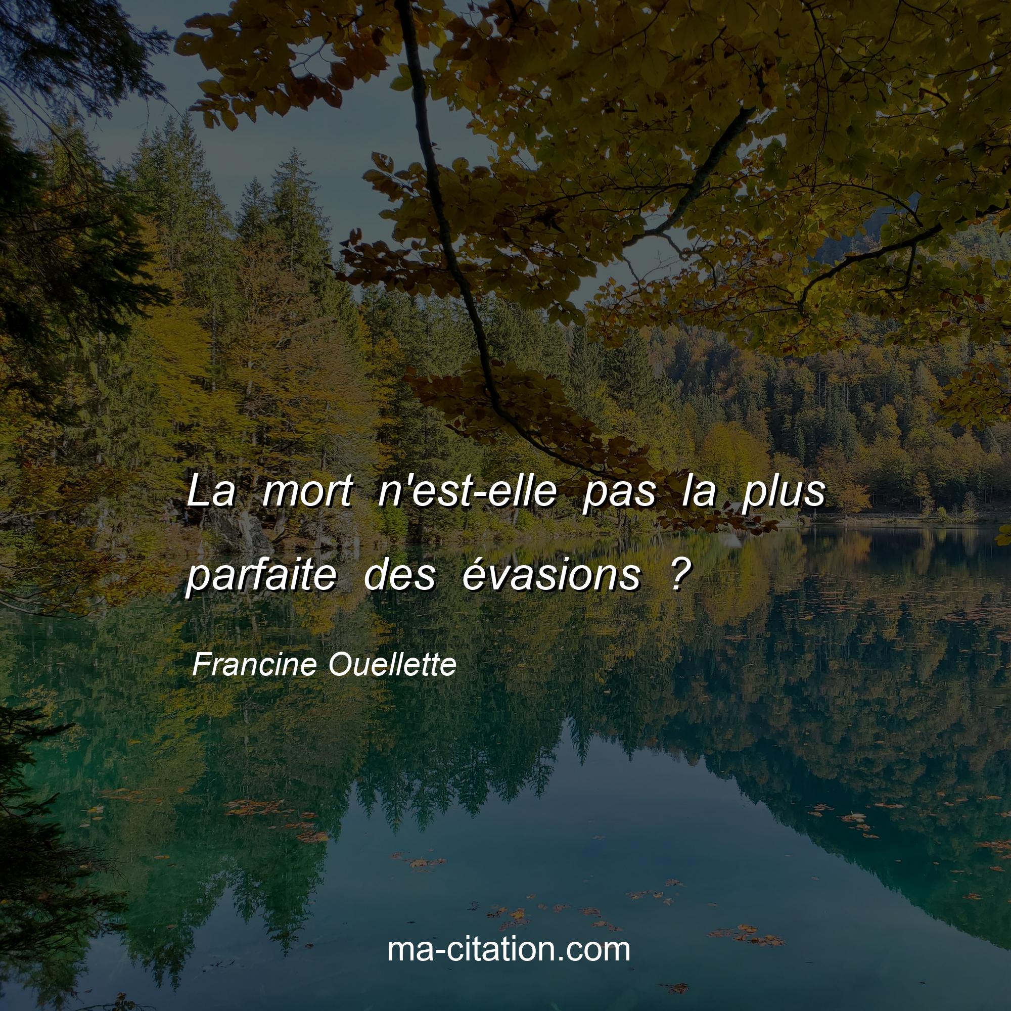 Francine Ouellette est l'auteur de la citation sur la vie "La mort n'est-elle pas la plus parfaite des évasions ?".