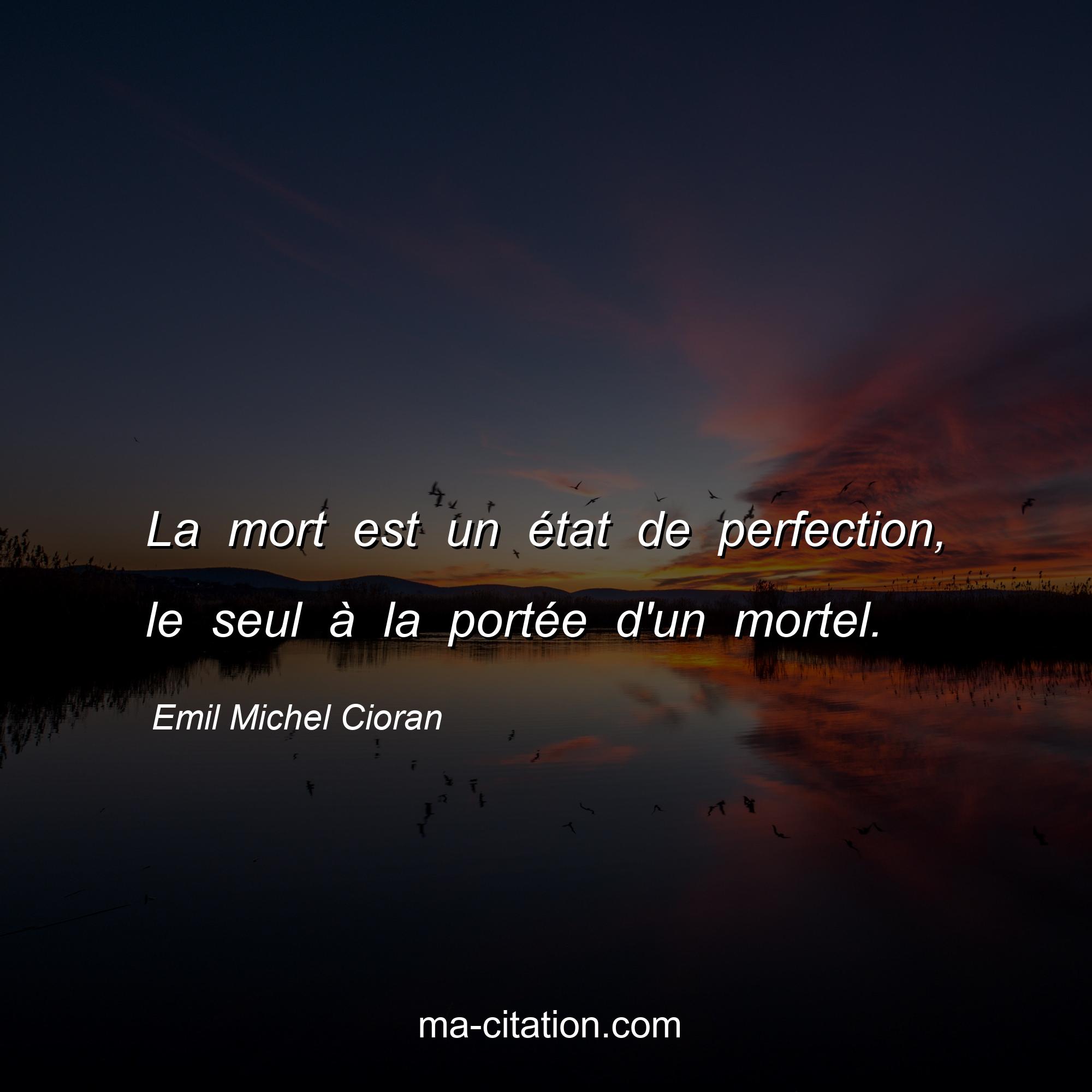Citation sur la vie d'Emil Michel Cioran :La mort est un état de perfection, le seul à la portée d'un mortel.