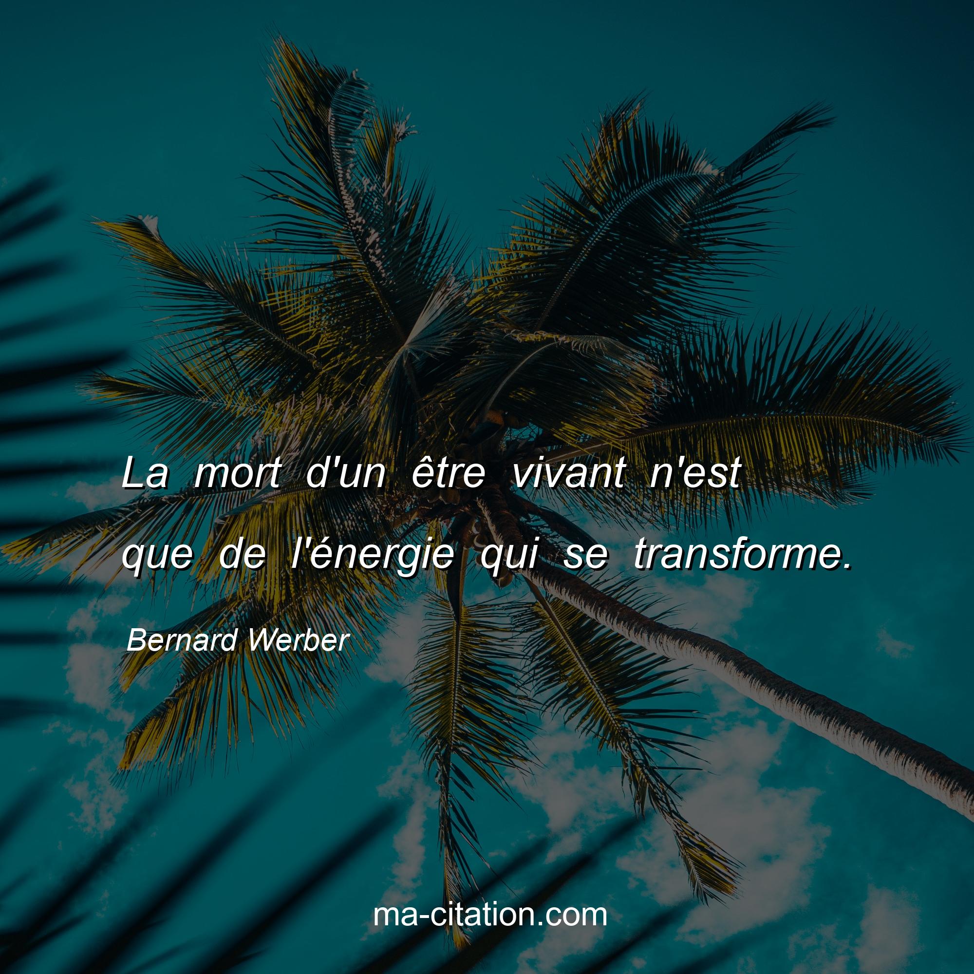 Citation sur la vie de Bernard Werber :La mort d'un être vivant n'est que de l'énergie qui se transforme.