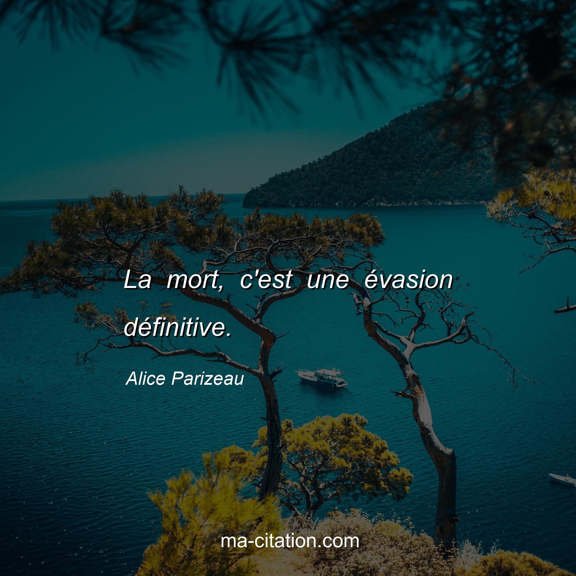 Alice Parizeau est l'auteur de la citation sur la vie "La mort, c'est une évasion définitive.".