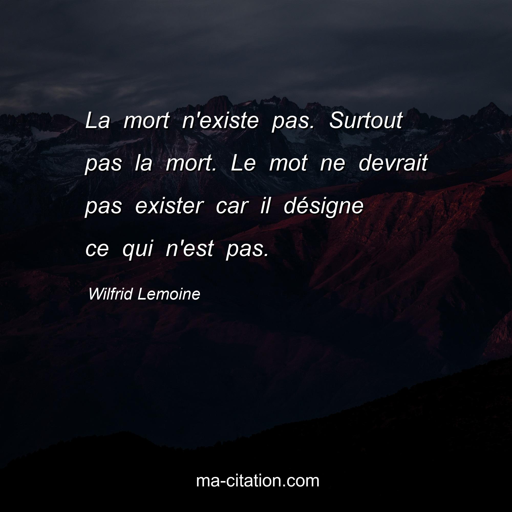 Citation sur la vie de Wilfrid Lemoine :La mort n'existe pas. Surtout pas la mort. Le mot ne devrait pas exister car il désigne ce qui n'est pas.