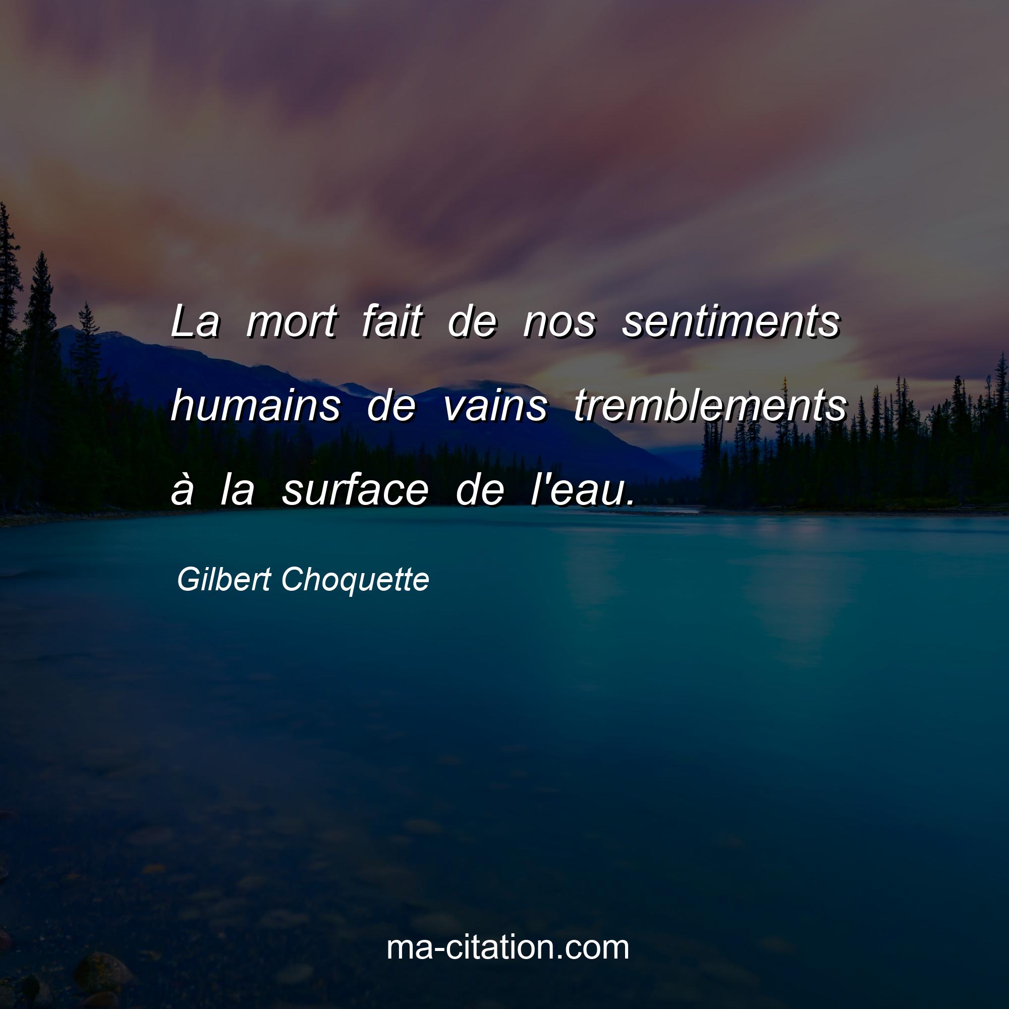 Citation sur la vie de Gilbert Choquette :La mort fait de nos sentiments humains de vains tremblements à la surface de l'eau.