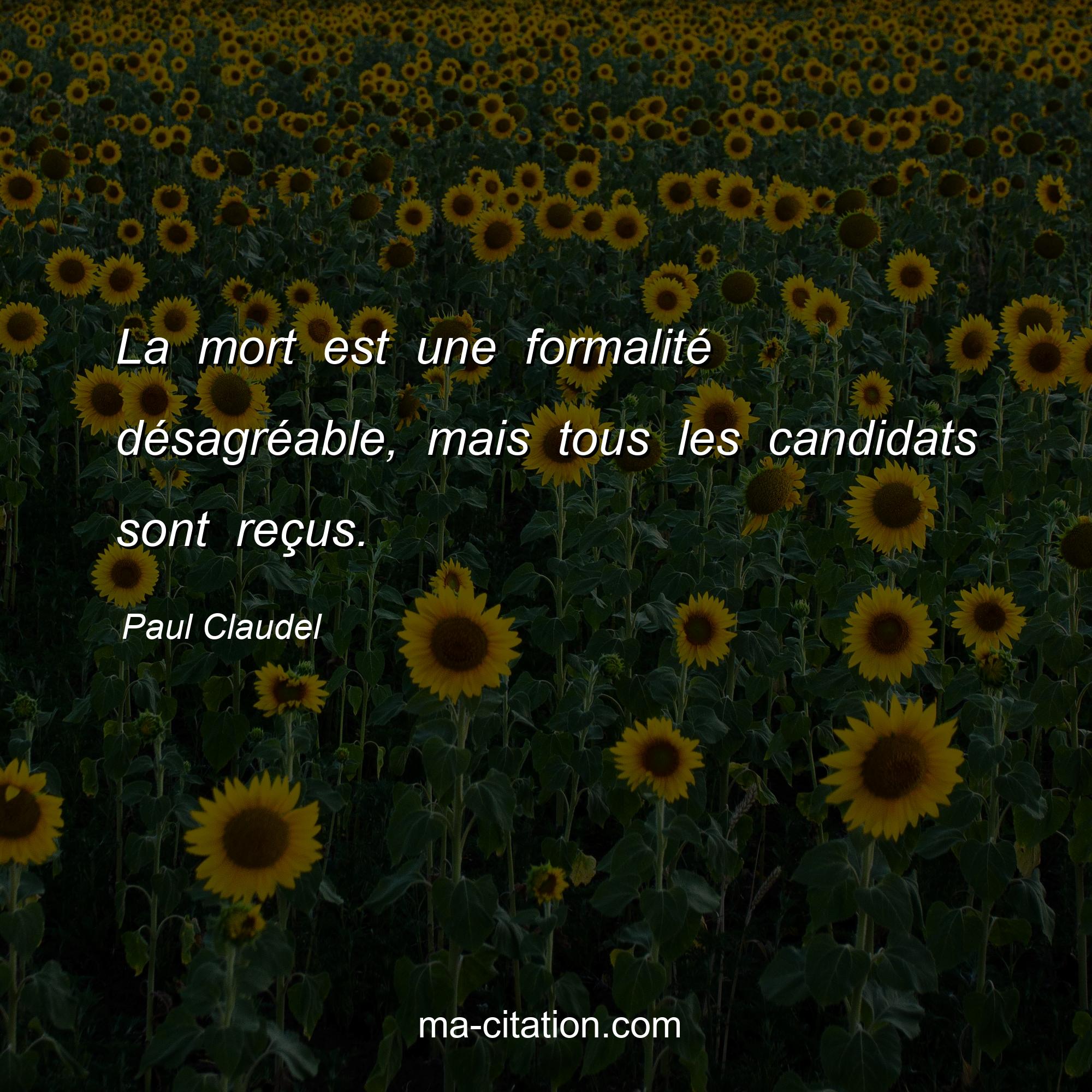 Citation sur la vie de Paul Claudel :La mort est une formalité désagréable, mais tous les candidats sont reçus.