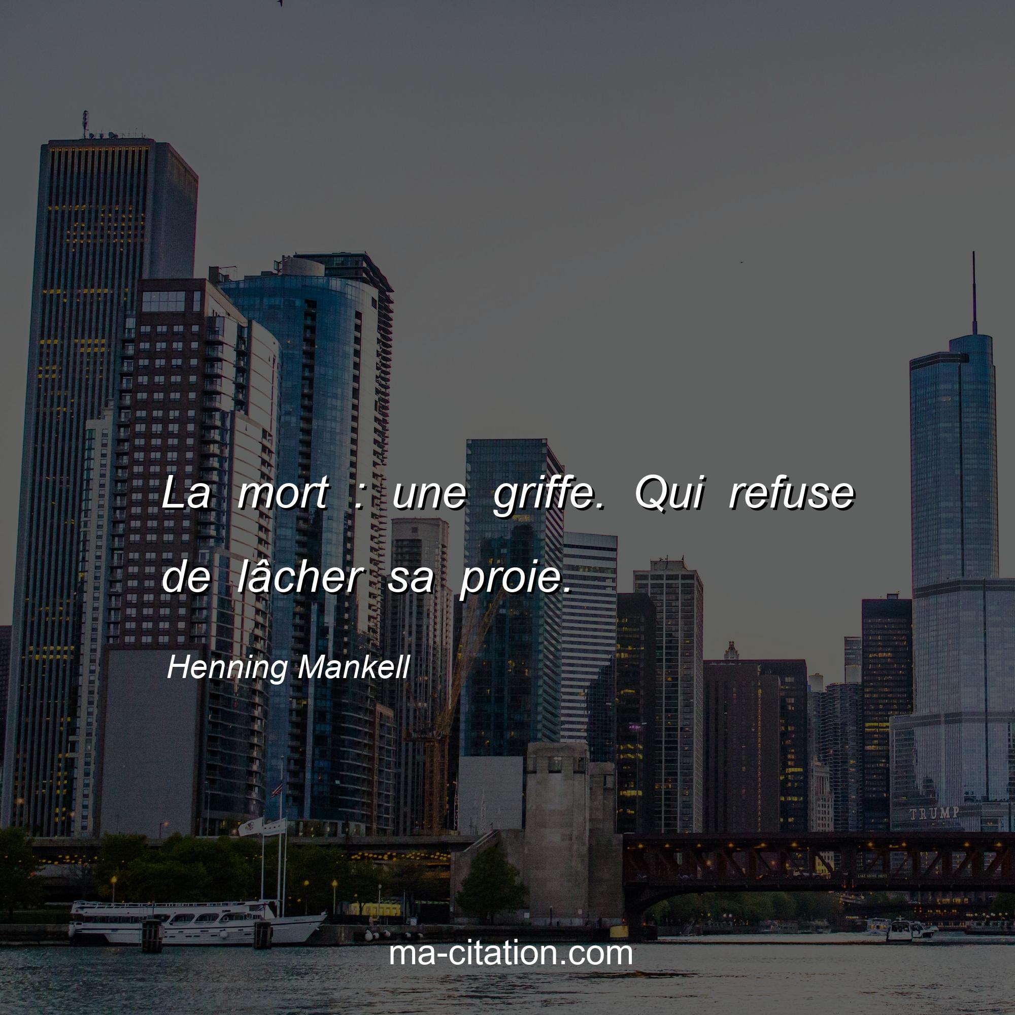 Citation sur la vie de Henning Mankell :La mort : une griffe. Qui refuse de lâcher sa proie.
