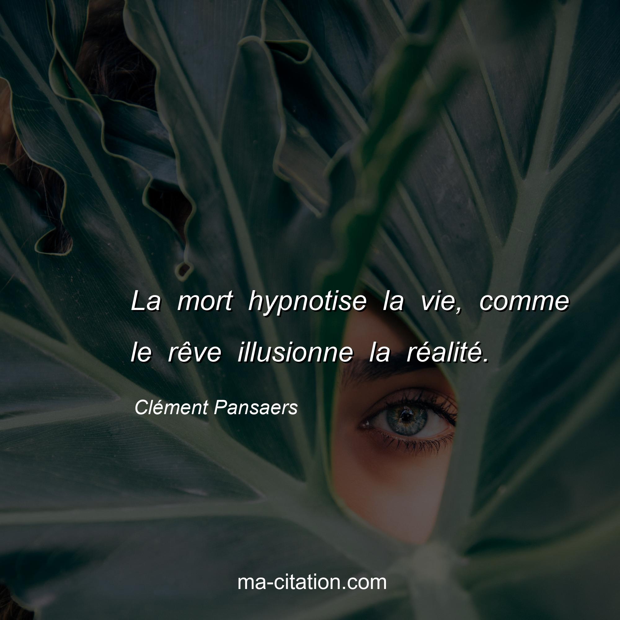 Clément Pansaers est l'auteur de la citation sur la vie "La mort hypnotise la vie, comme le rêve illusionne la réalité.".