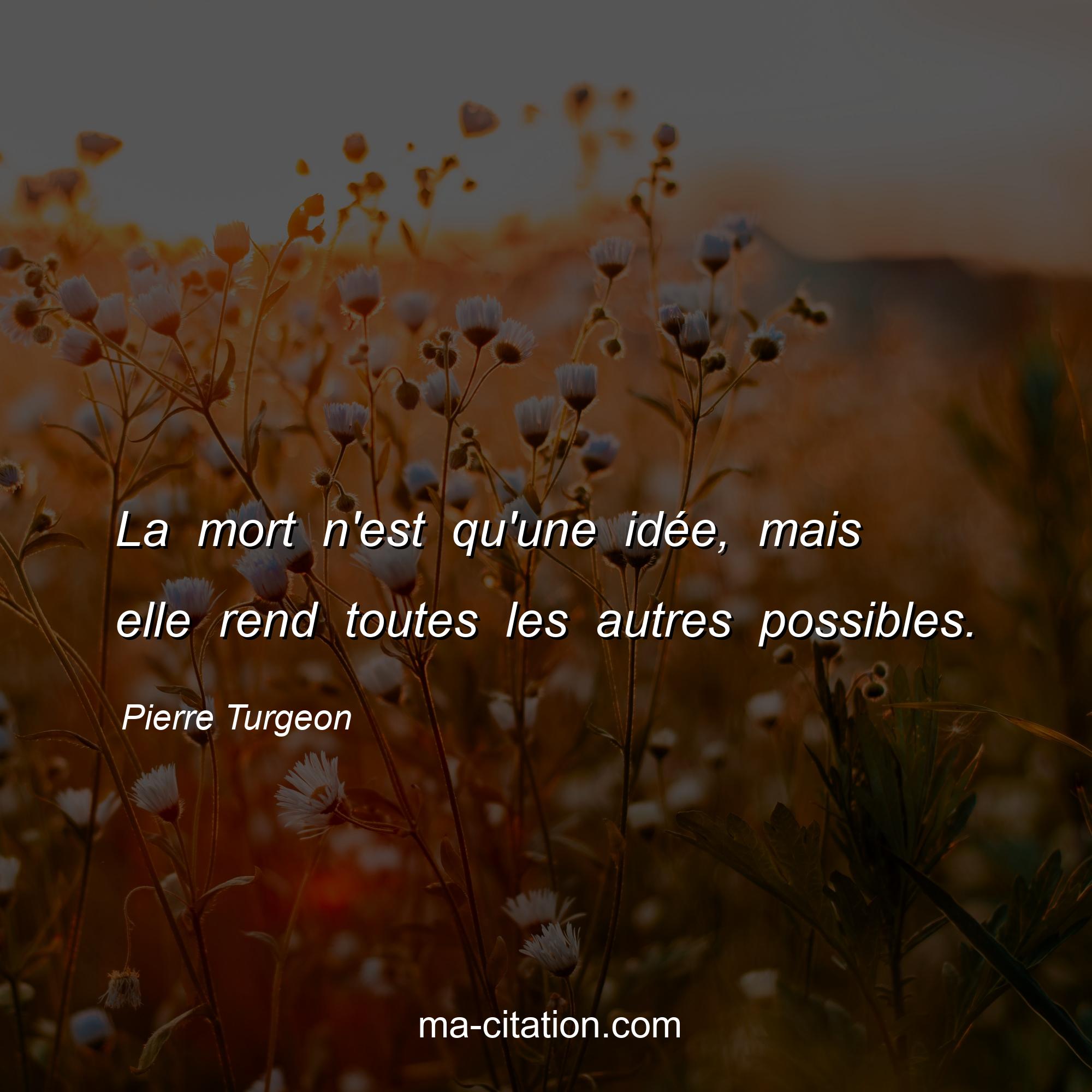 Citation sur la vie de Pierre Turgeon :La mort n'est qu'une idée, mais elle rend toutes les autres possibles.