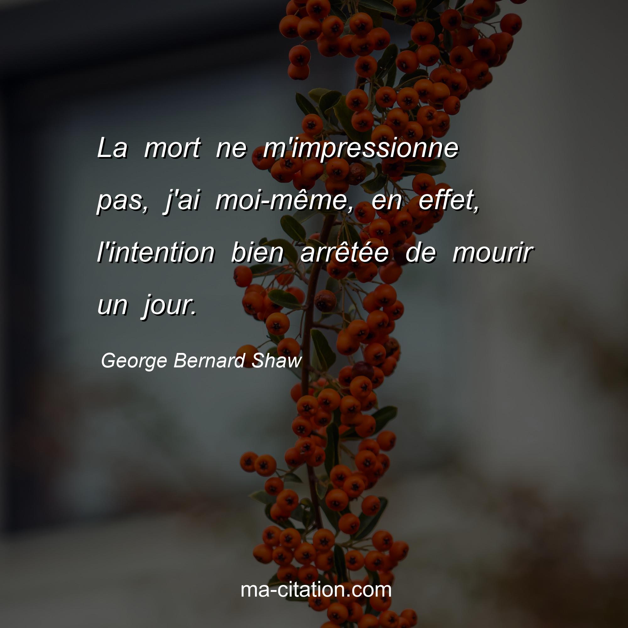 Citation sur la vie de George Bernard Shaw :La mort ne m'impressionne pas, j'ai moi-même, en effet, l'intention bien arrêtée de mourir un jour.