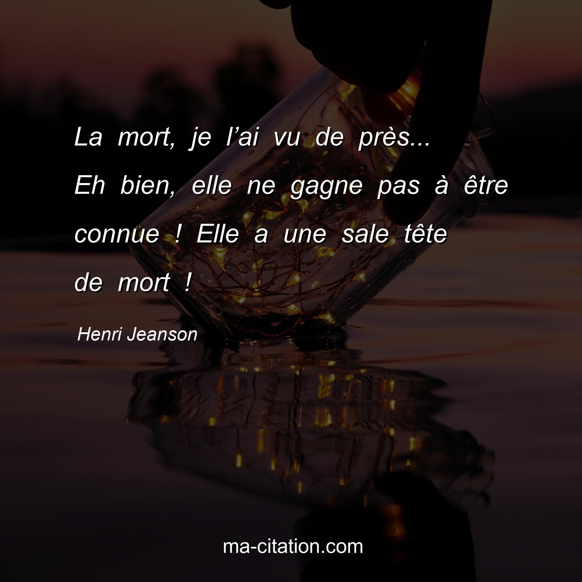Citation sur la vie de Henri Jeanson :La mort, je l’ai vu de près... Eh bien, elle ne gagne pas à être connue ! Elle a une sale tête de mort !