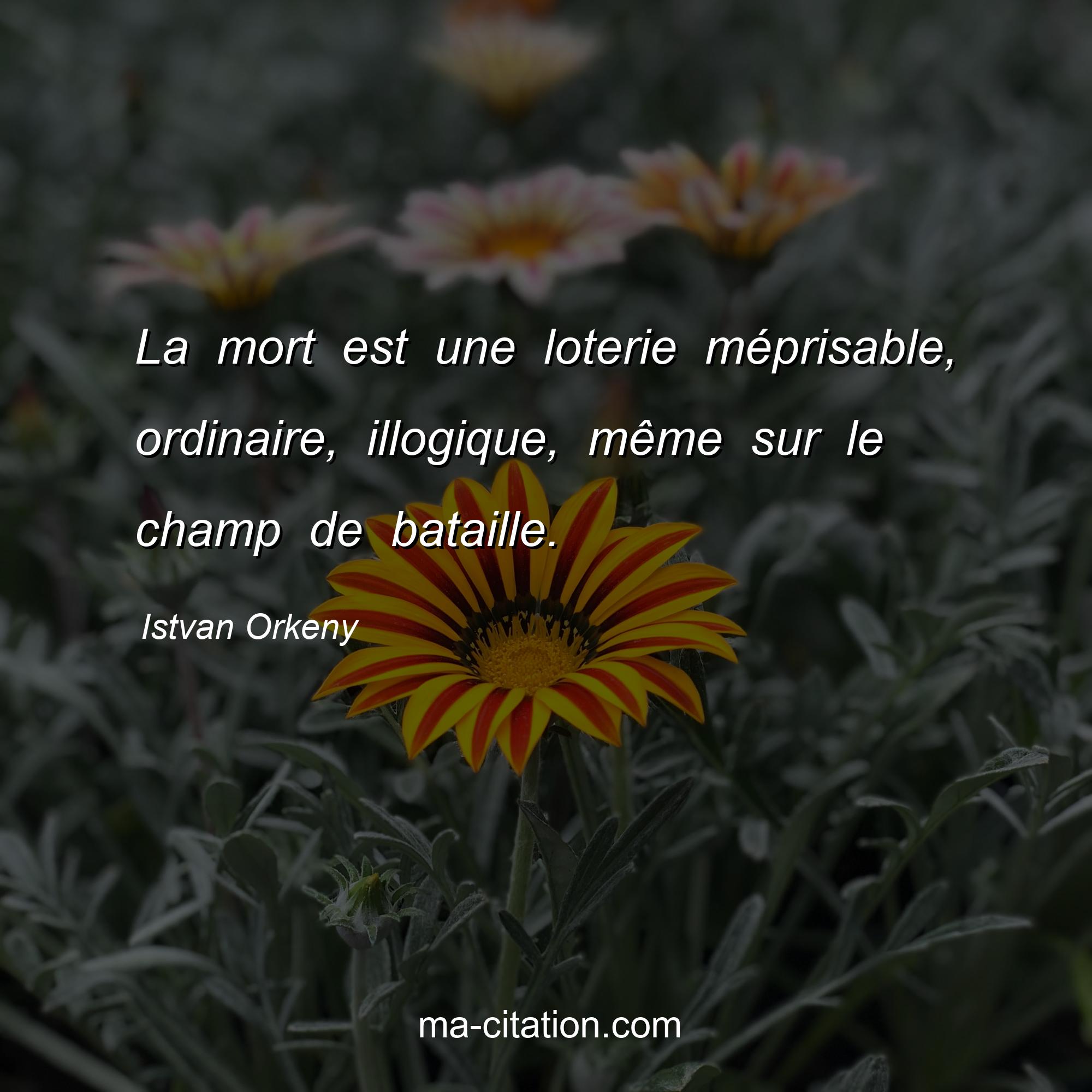 Istvan Orkeny est l'auteur de la citation sur la vie "La mort est une loterie méprisable, ordinaire, illogique, même sur le champ de bataille.".
