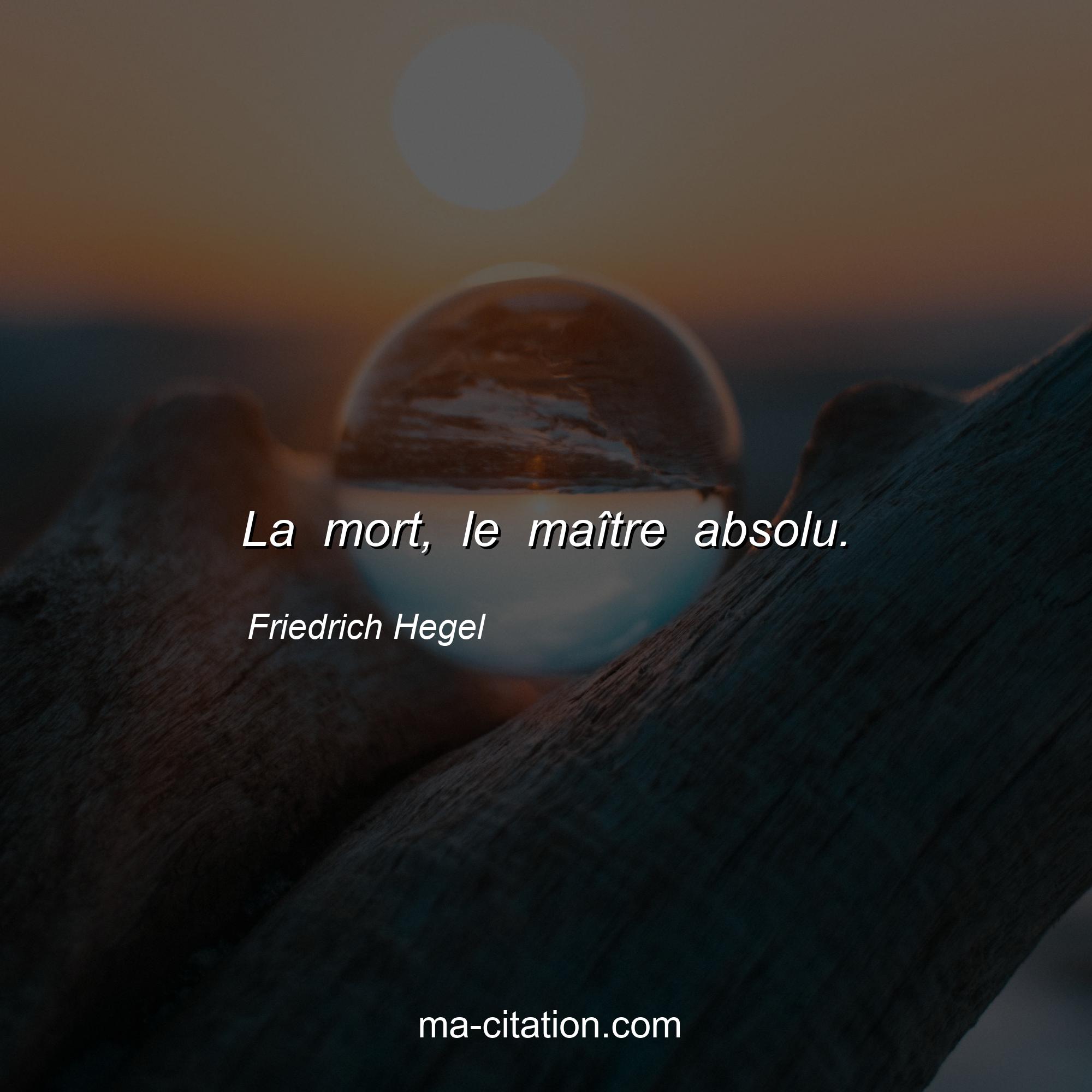 Citation sur la vie de Friedrich Hegel :La mort, le maître absolu.