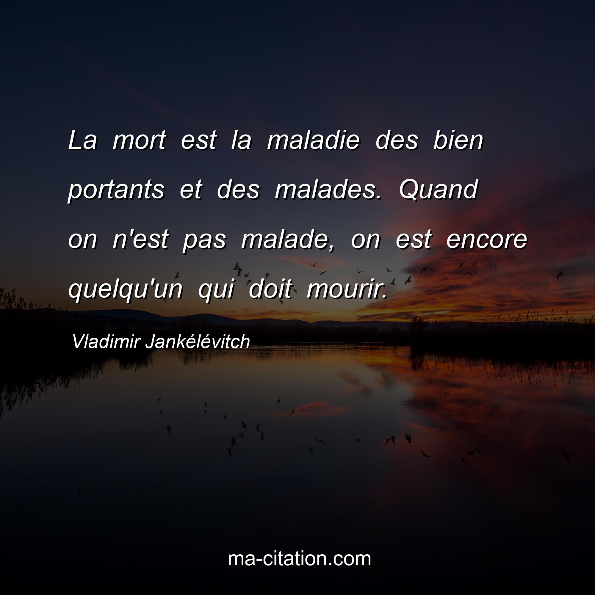Citation sur la vie de Vladimir Jankélévitch :La mort est la maladie des bien portants et des malades. Quand on n'est pas malade, on est encore quelqu'un qui doit mourir.