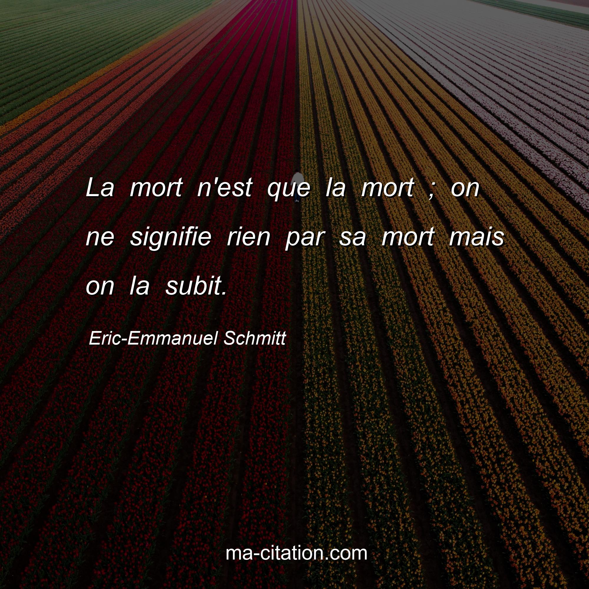 Citation sur la vie d'Eric-Emmanuel Schmitt :La mort n'est que la mort ; on ne signifie rien par sa mort mais on la subit.