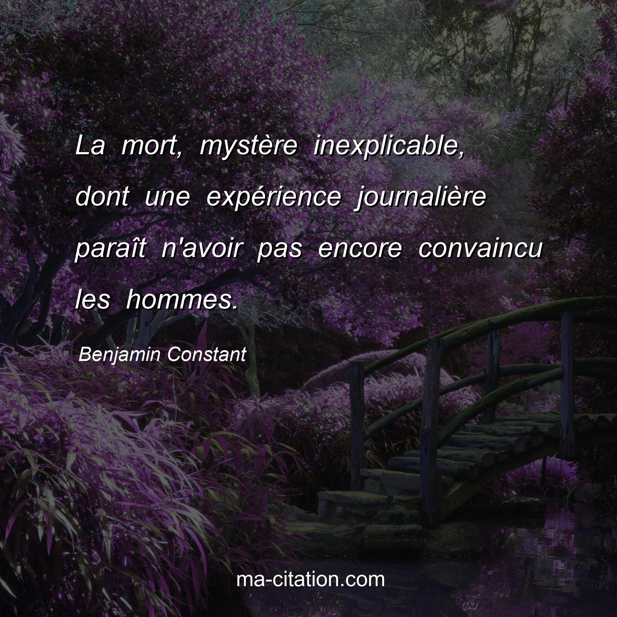Citation sur la vie de Benjamin Constant :La mort, mystère inexplicable, dont une expérience journalière paraît n'avoir pas encore convaincu les hommes.