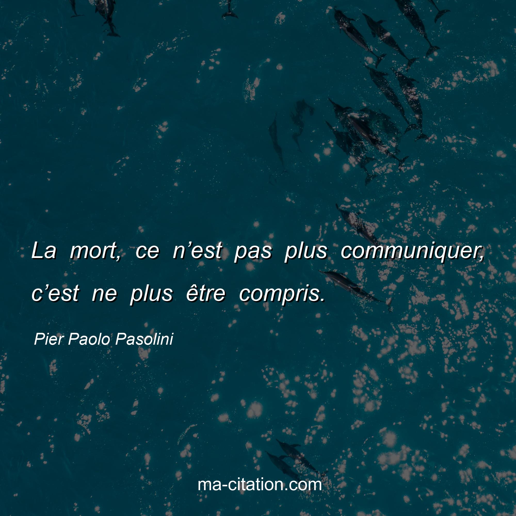 Pier Paolo Pasolini est l'auteur de la citation sur la vie "La mort, ce n’est pas plus communiquer, c’est ne plus être compris.".