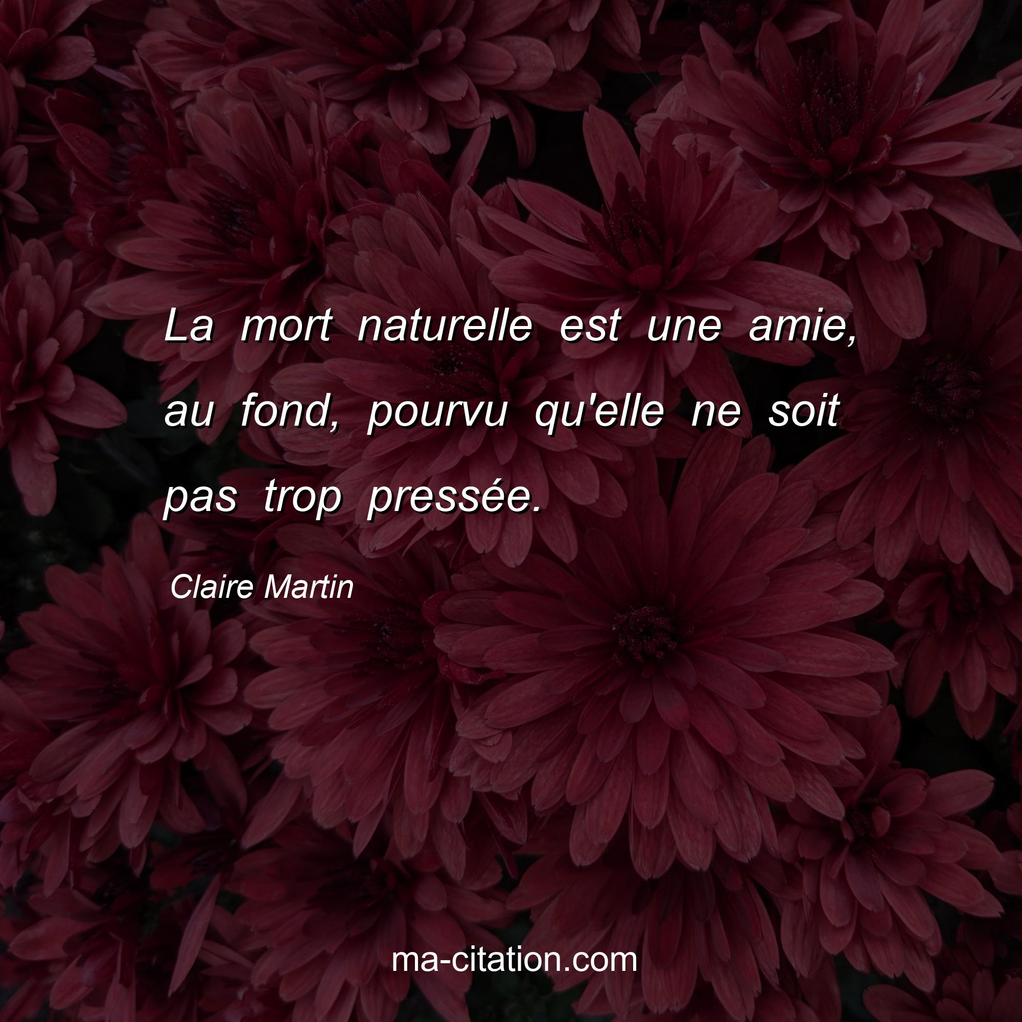 Citation sur la vie de Claire Martin :La mort naturelle est une amie, au fond, pourvu qu'elle ne soit pas trop pressée.