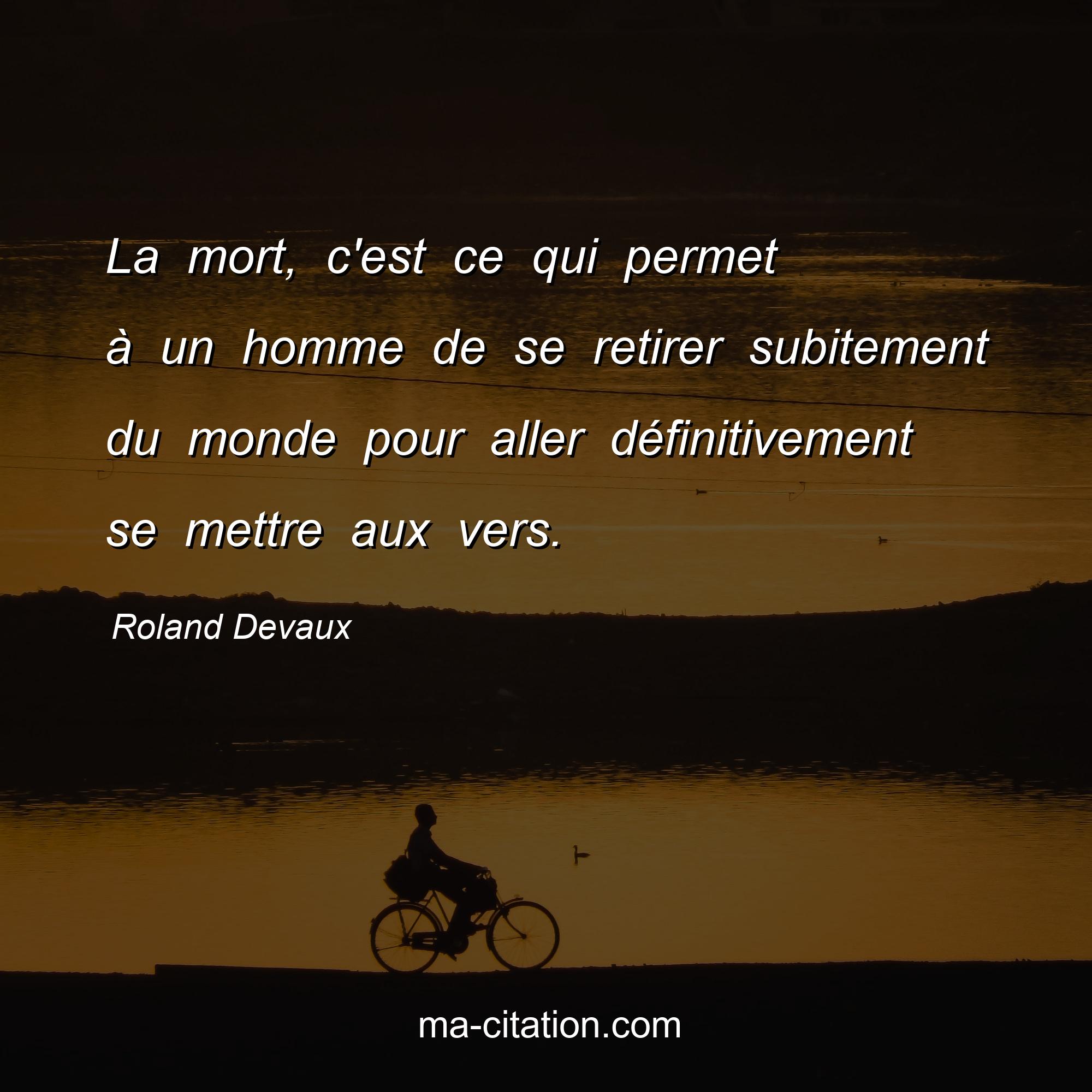 Citation sur la vie de Roland Devaux :La mort, c'est ce qui permet à un homme de se retirer subitement du monde pour aller définitivement se mettre aux vers.