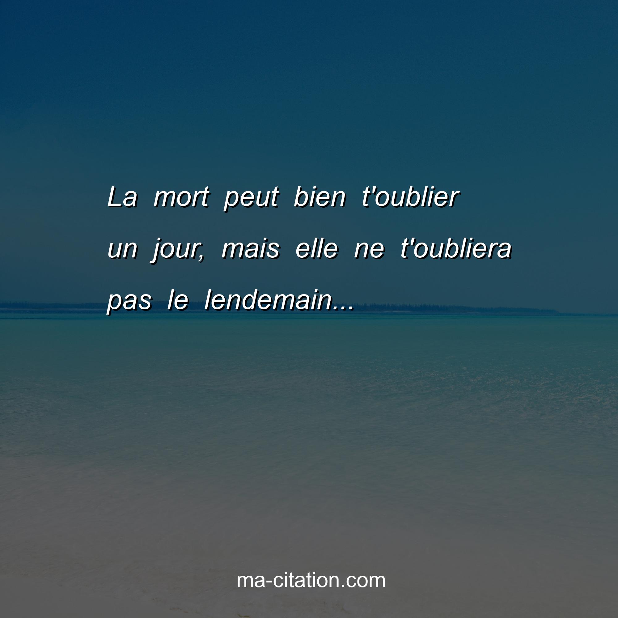 La mort peut bien t'oublier un jour, mais elle ne t'oubliera pas le lendemain...