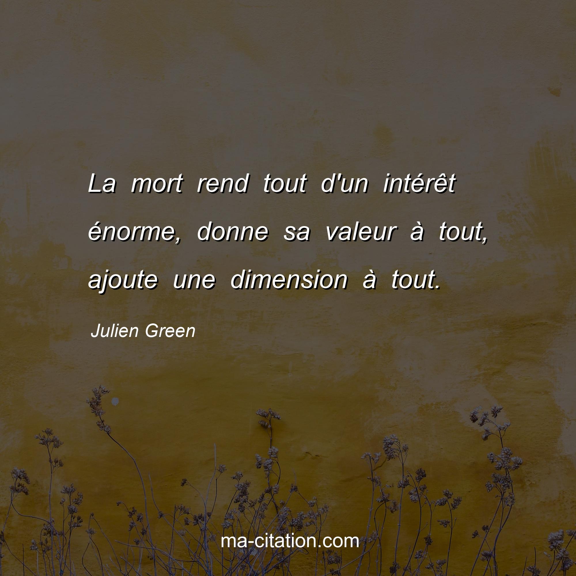 Citation sur la vie de Julien Green :La mort rend tout d'un intérêt énorme, donne sa valeur à tout, ajoute une dimension à tout.