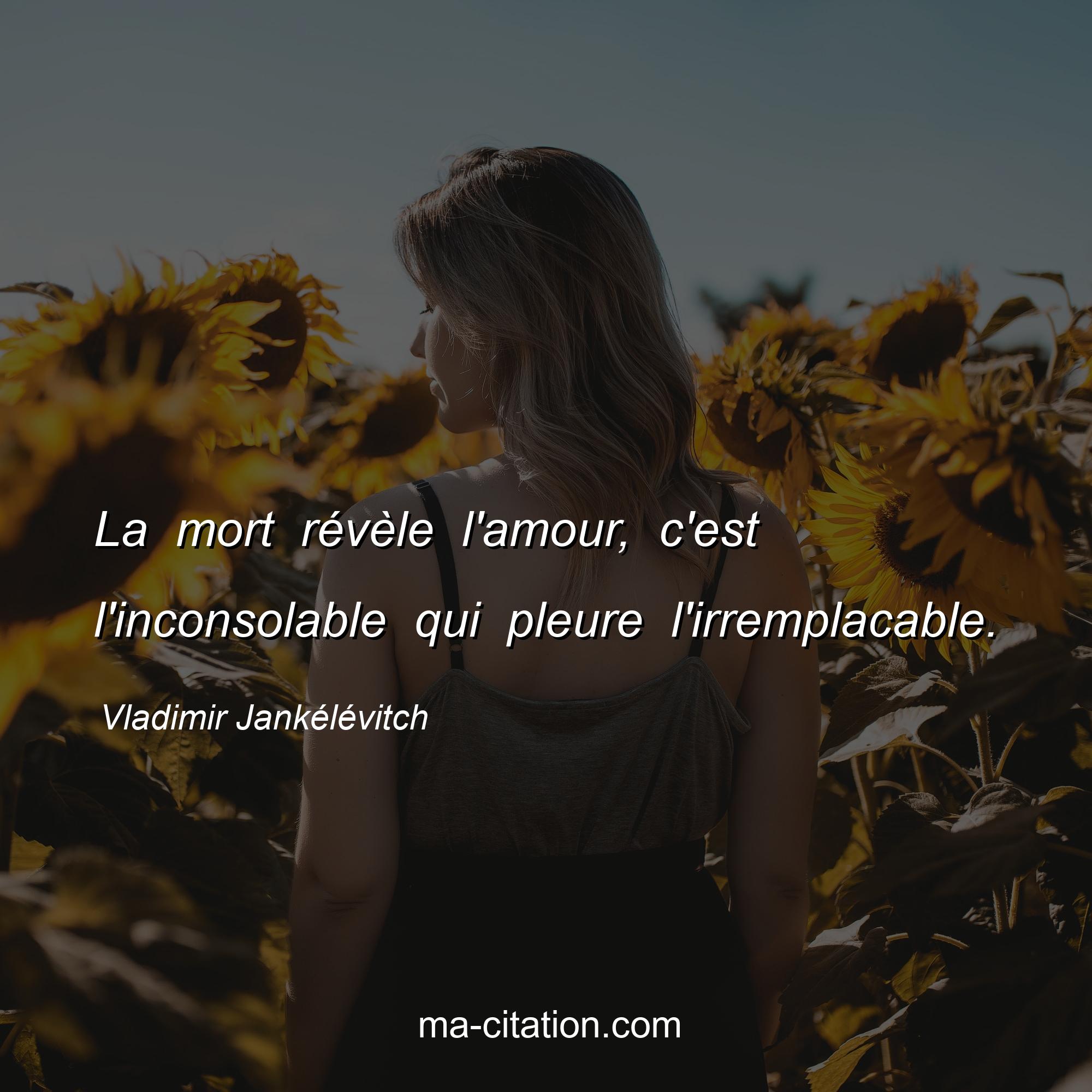 Vladimir Jankélévitch est l'auteur de la citation sur la vie "La mort révèle l'amour, c'est l'inconsolable qui pleure l'irremplacable.".