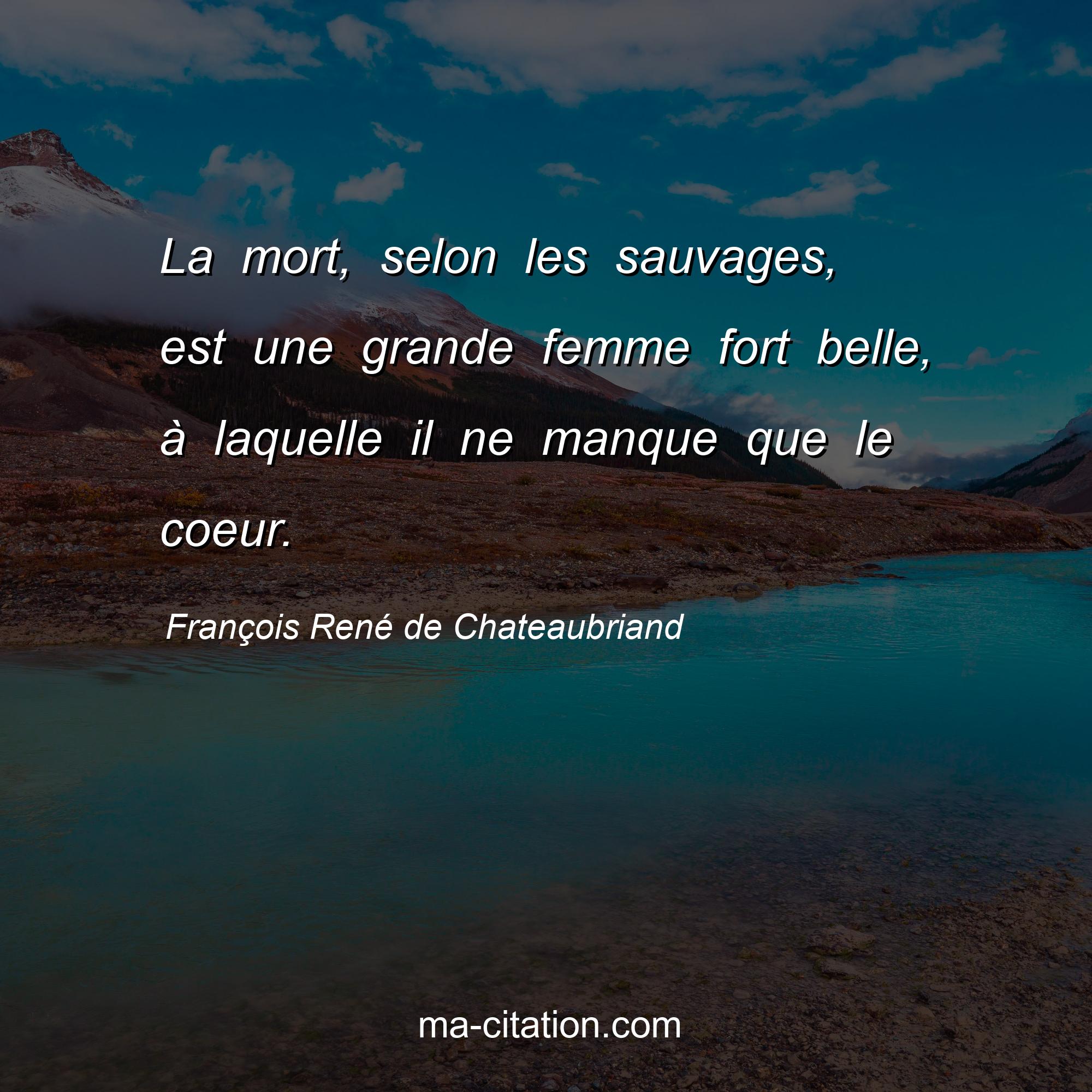 Citation sur la vie de François René de Chateaubriand :La mort, selon les sauvages, est une grande femme fort belle, à laquelle il ne manque que le coeur.