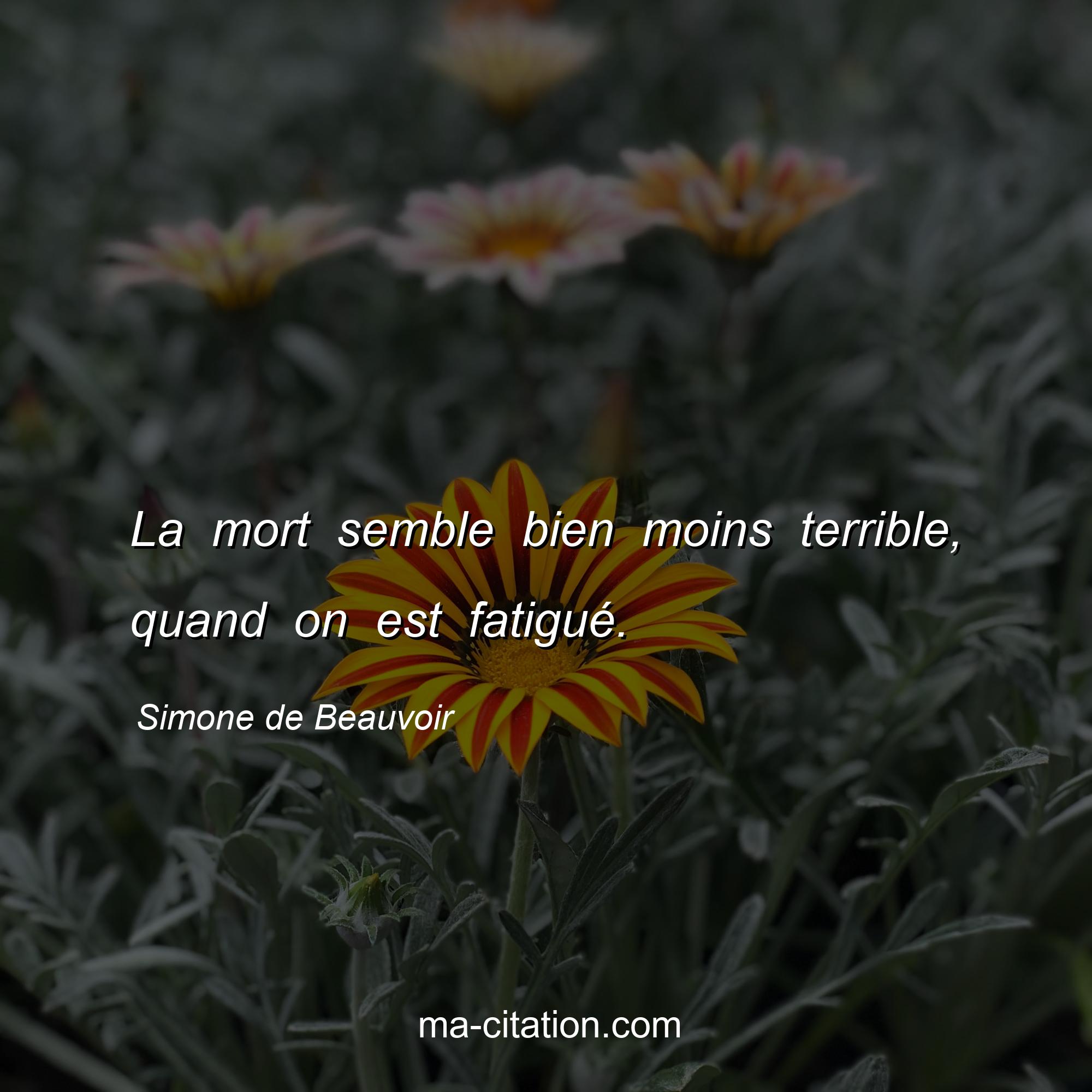 Citation sur la vie de Simone de Beauvoir :La mort semble bien moins terrible, quand on est fatigué.
