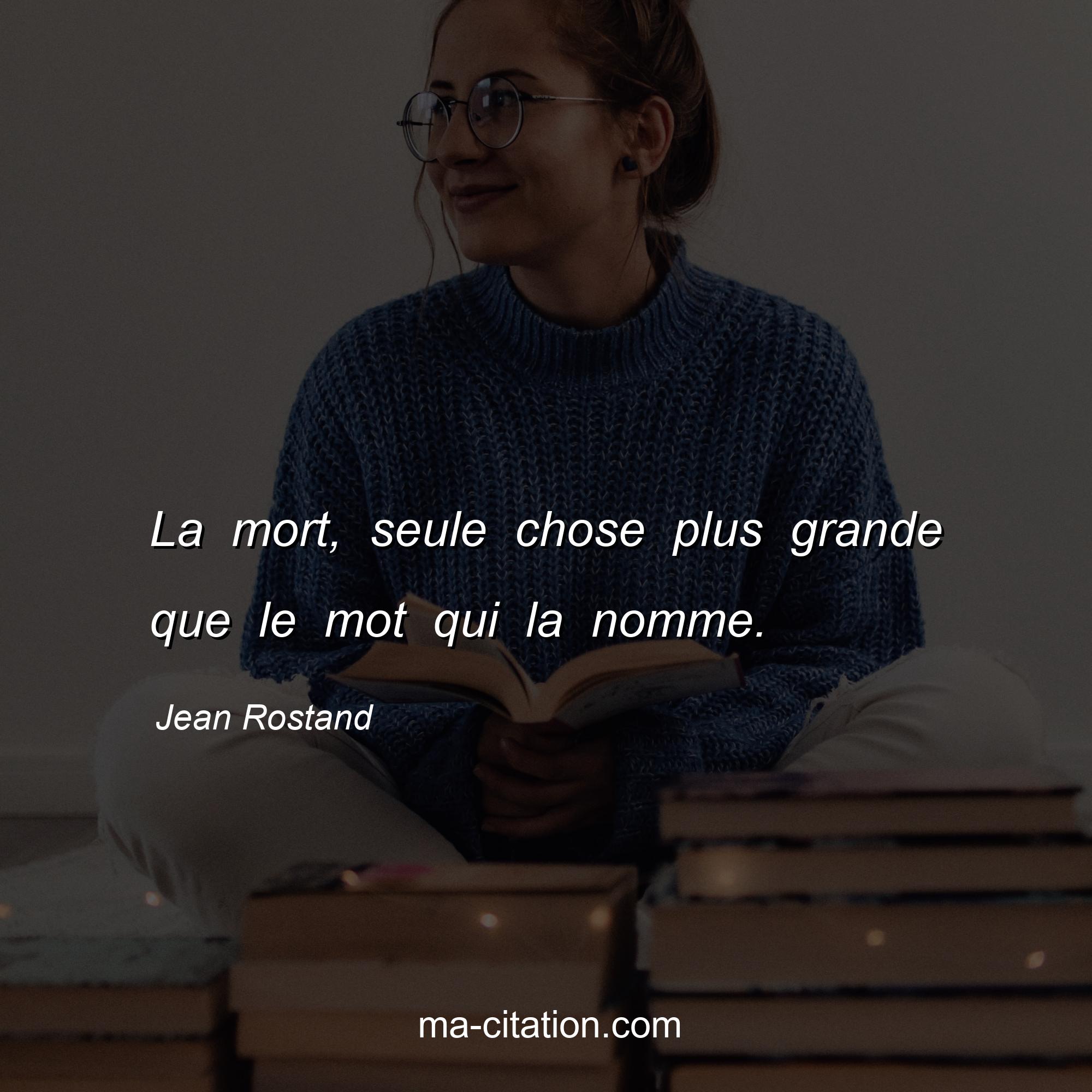 Citation sur la vie de Jean Rostand :La mort, seule chose plus grande que le mot qui la nomme.