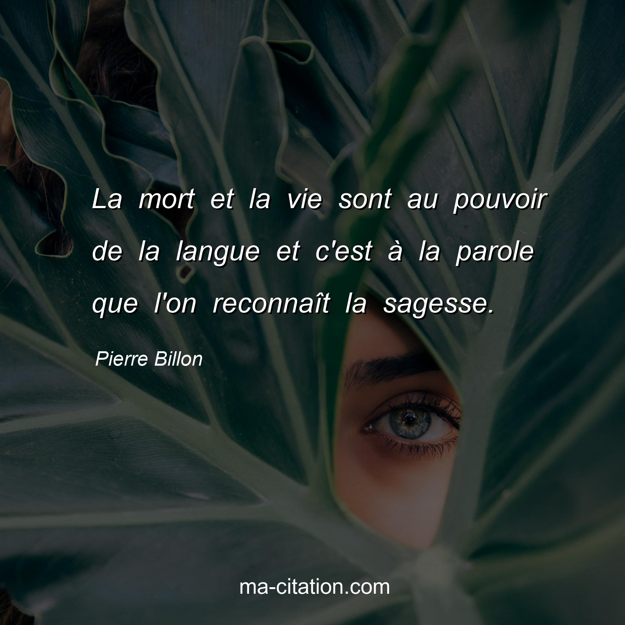 Pierre Billon est l'auteur de la citation sur la vie "La mort et la vie sont au pouvoir de la langue et c'est à la parole que l'on reconnaît la sagesse.".