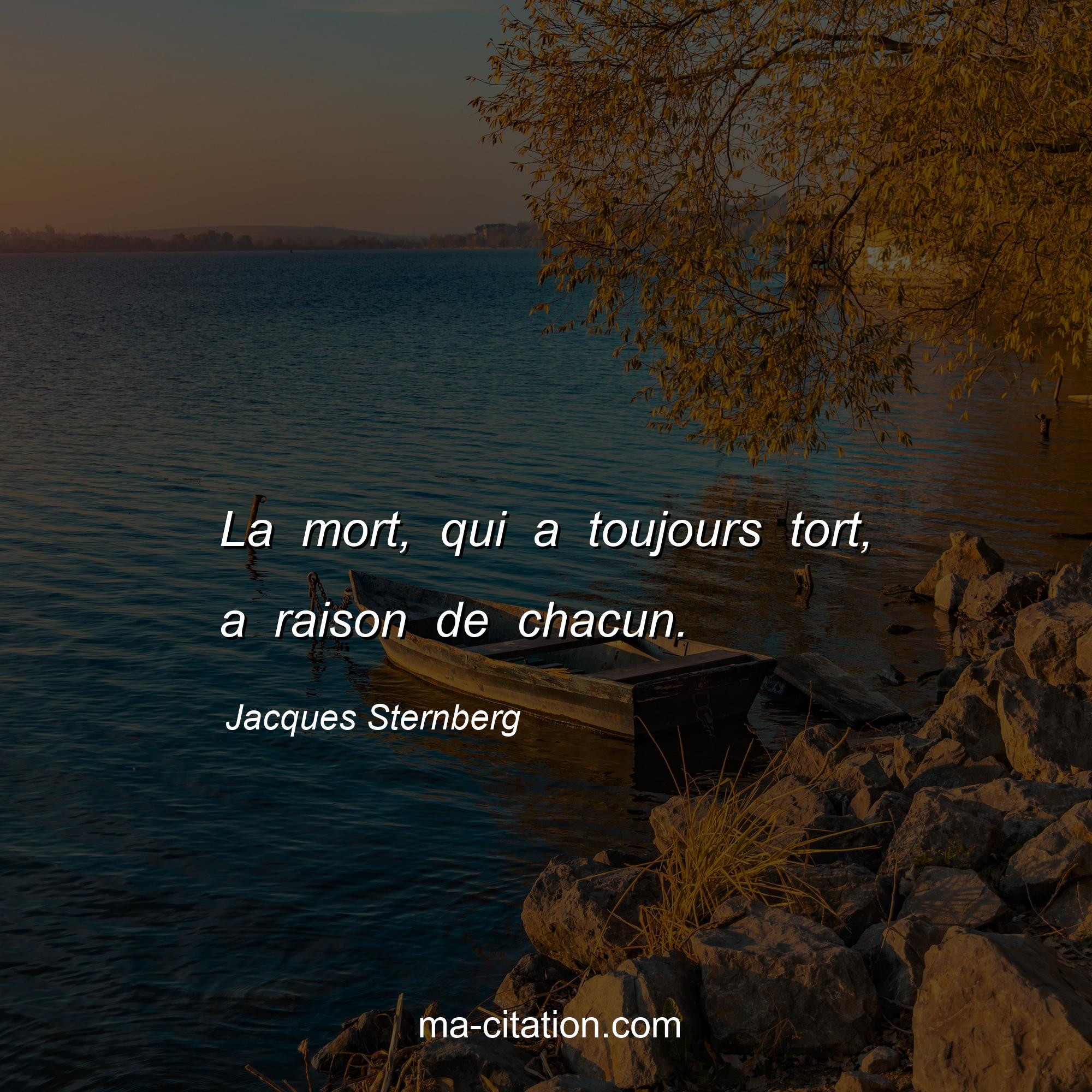 Citation sur la vie de Jacques Sternberg :La mort, qui a toujours tort, a raison de chacun.