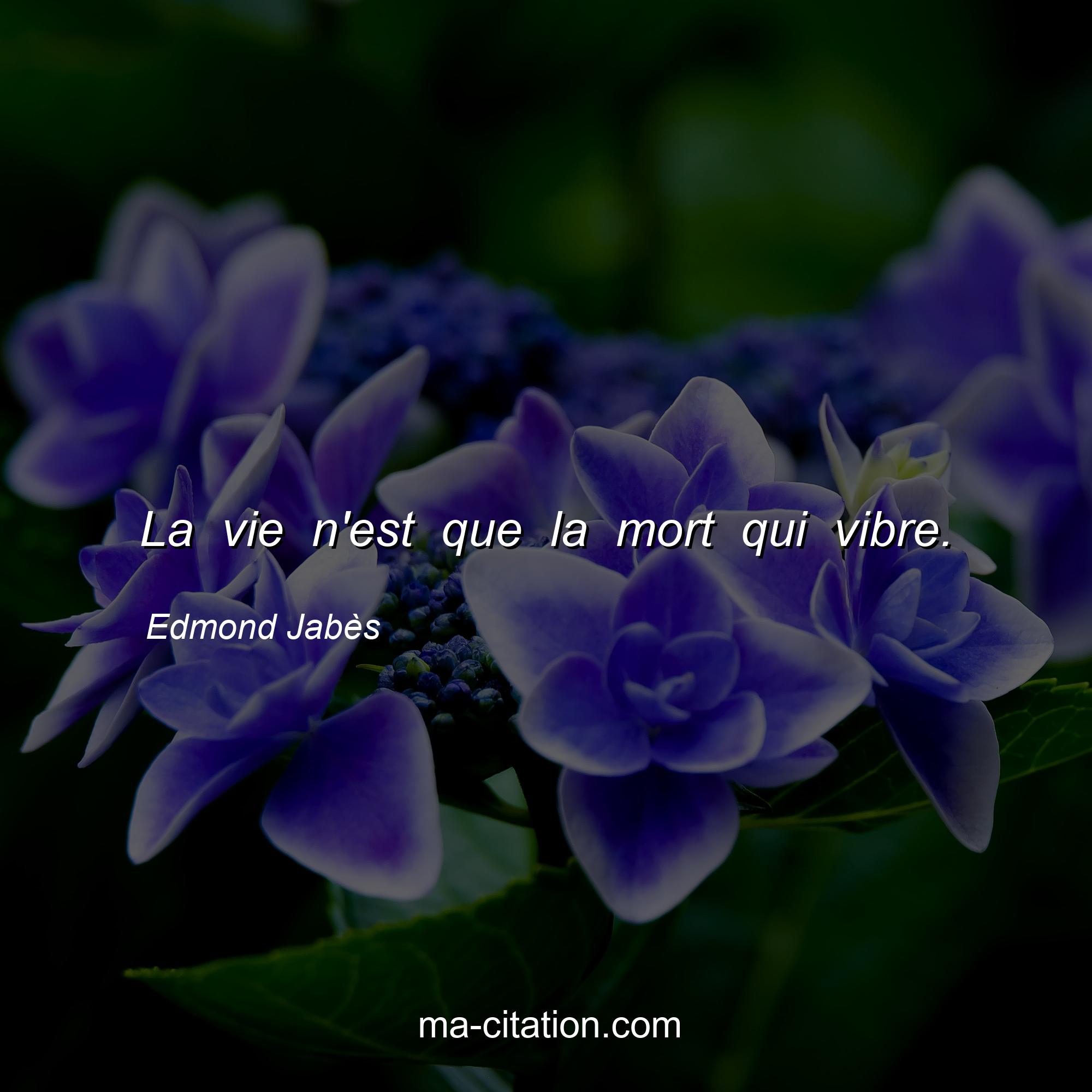 Edmond Jabès est l'auteur de la citation sur la vie "La vie n'est que la mort qui vibre.".