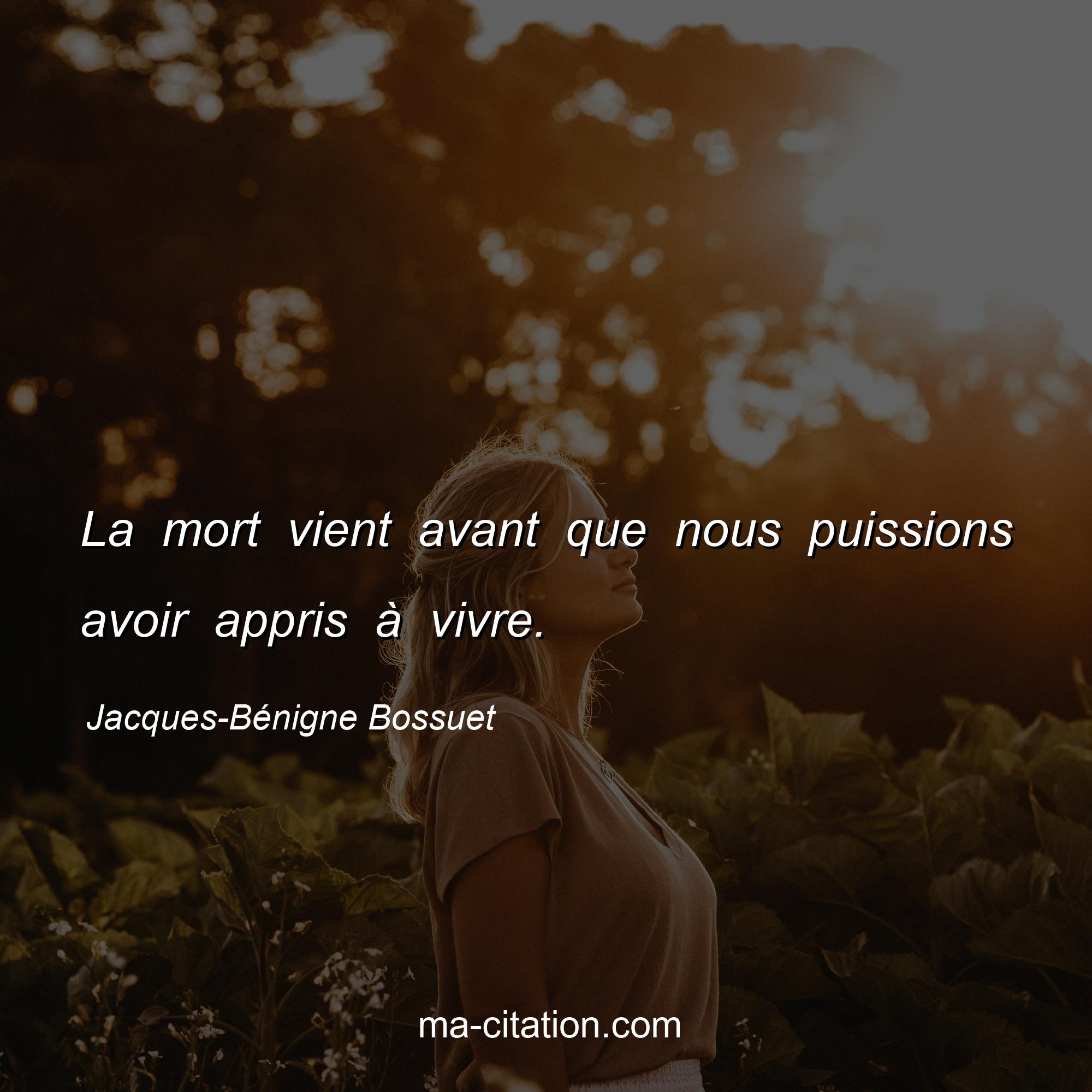 Citation sur la vie de Jacques-Bénigne Bossuet :La mort vient avant que nous puissions avoir appris à vivre.