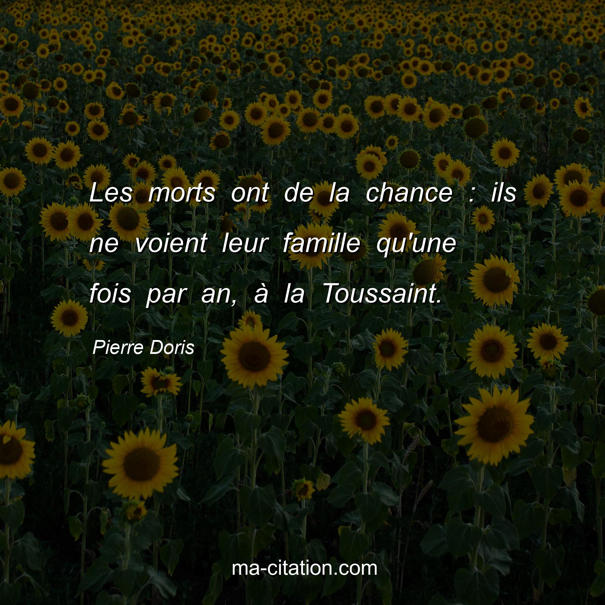 Citation sur la vie de Pierre Doris :Les morts ont de la chance : ils ne voient leur famille qu'une fois par an, Ã la Toussaint.