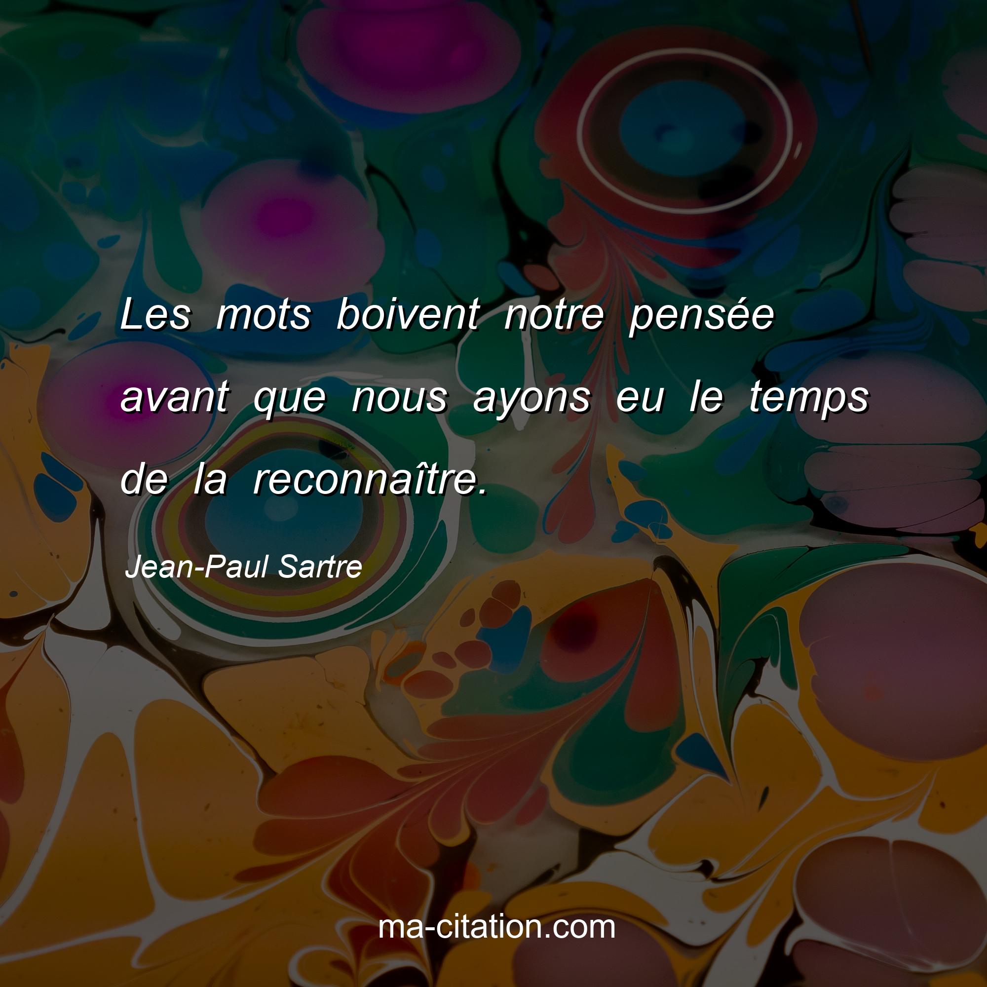 Citation sur la vie de Jean-Paul Sartre :Les mots boivent notre pensée avant que nous ayons eu le temps de la reconnaître.