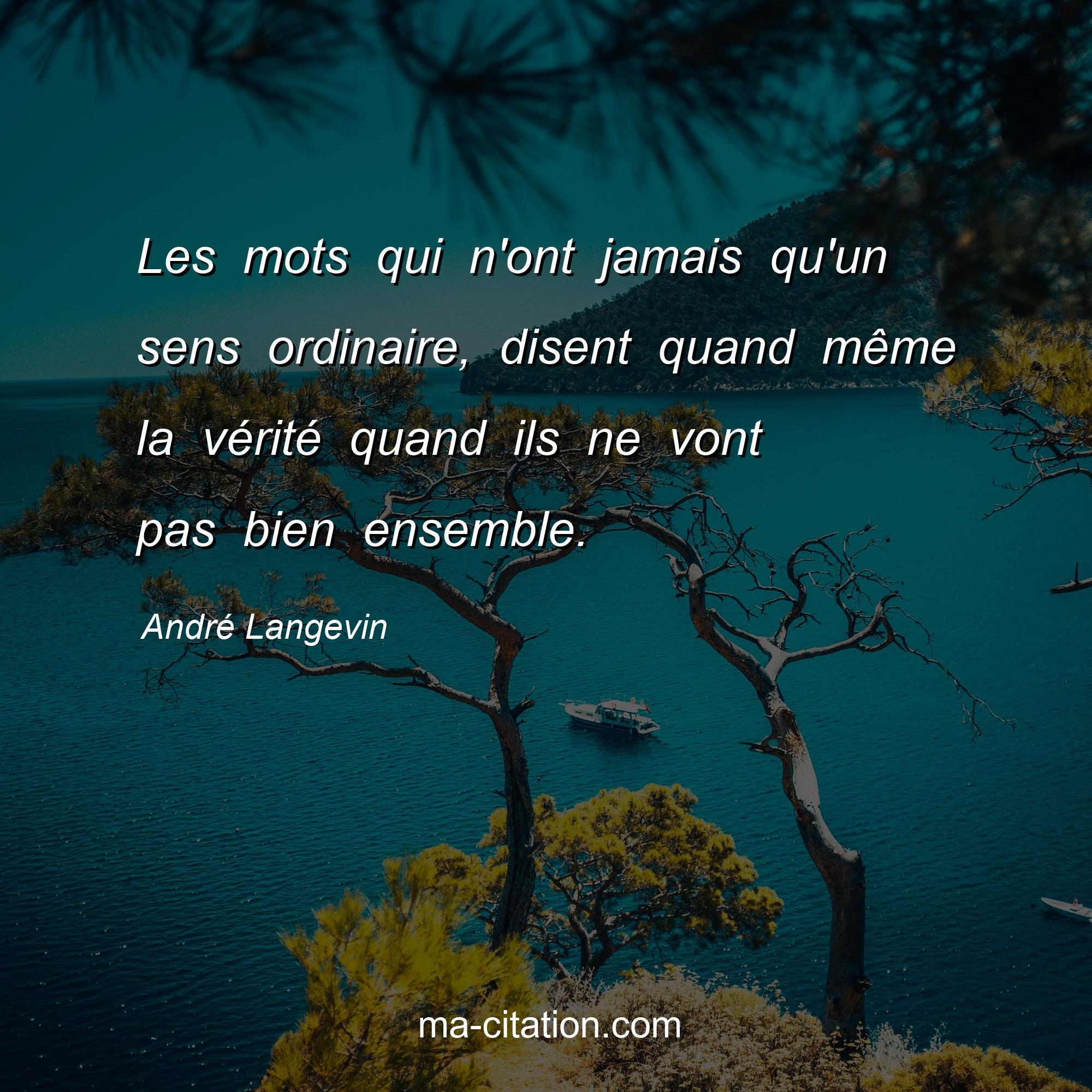 Citation sur la vie d'André Langevin :Les mots qui n'ont jamais qu'un sens ordinaire, disent quand même la vérité quand ils ne vont pas bien ensemble.