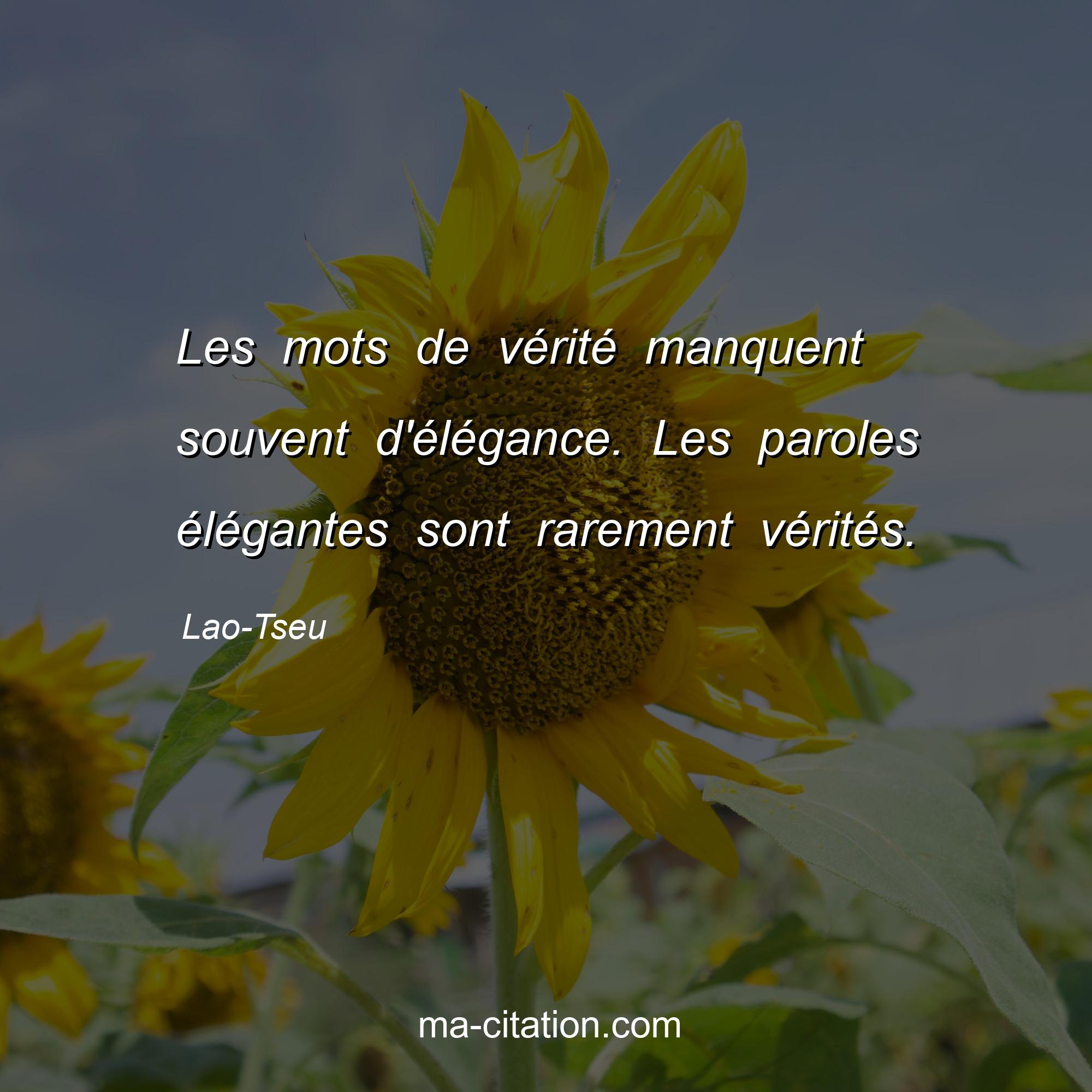Citation sur la vie de Lao-Tseu :Les mots de vérité manquent souvent d'élégance. Les paroles élégantes sont rarement vérités.