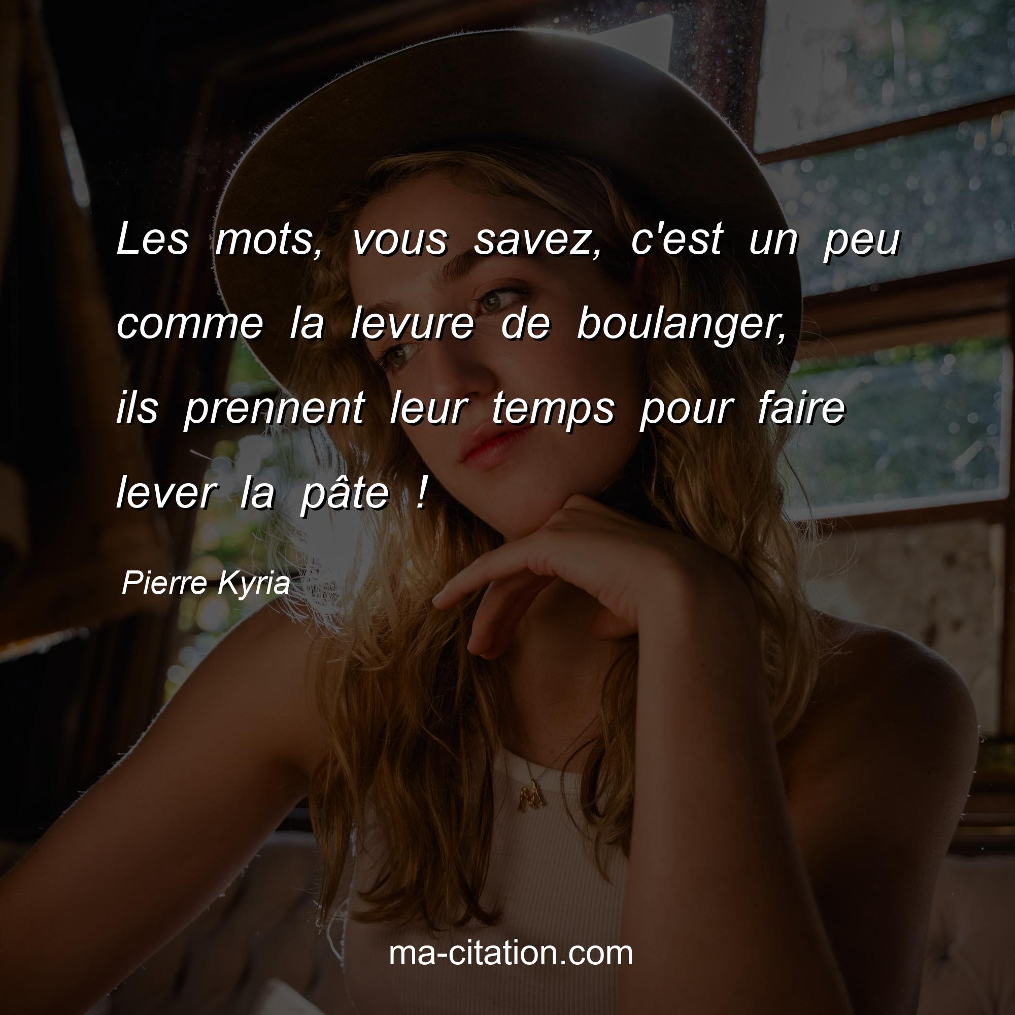 Citation sur la vie de Pierre Kyria :Les mots, vous savez, c'est un peu comme la levure de boulanger, ils prennent leur temps pour faire lever la pâte !