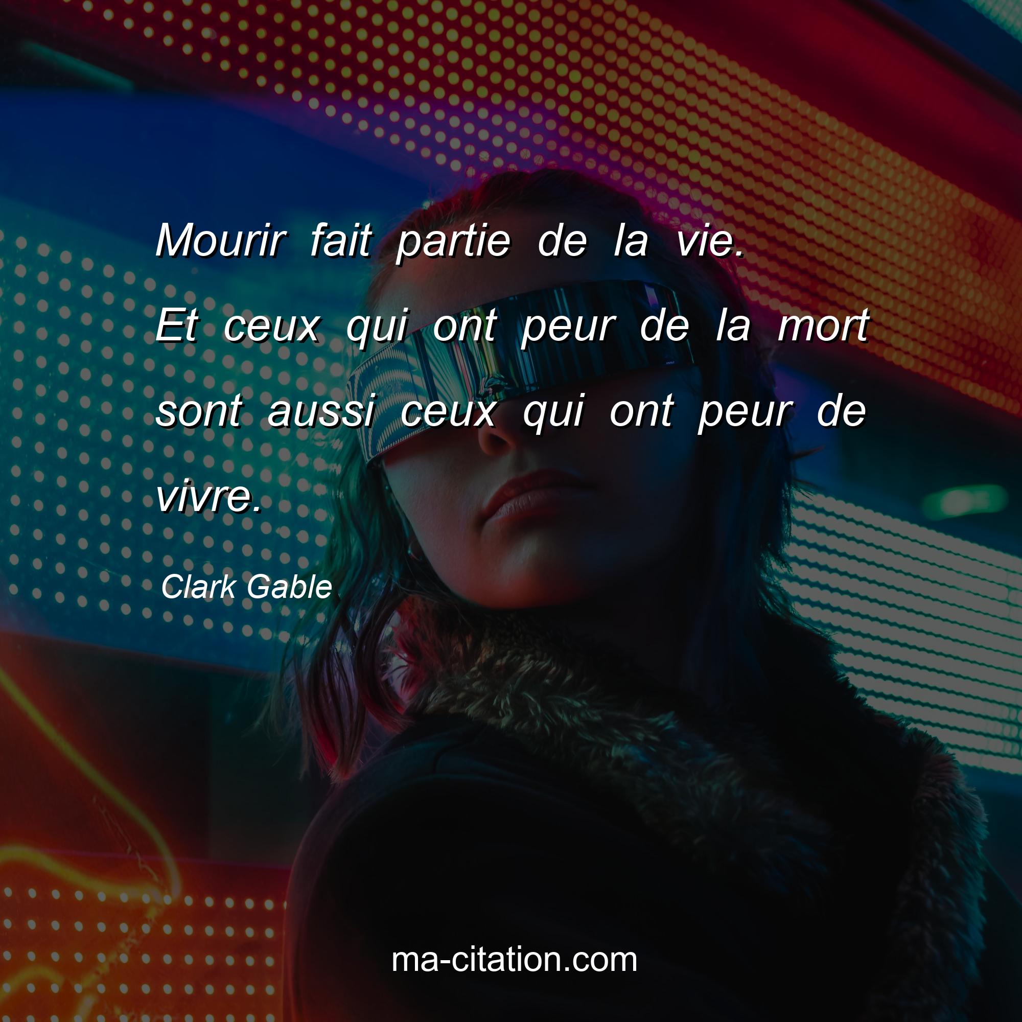 Citation sur la vie de Clark Gable :Mourir fait partie de la vie. Et ceux qui ont peur de la mort sont aussi ceux qui ont peur de vivre.