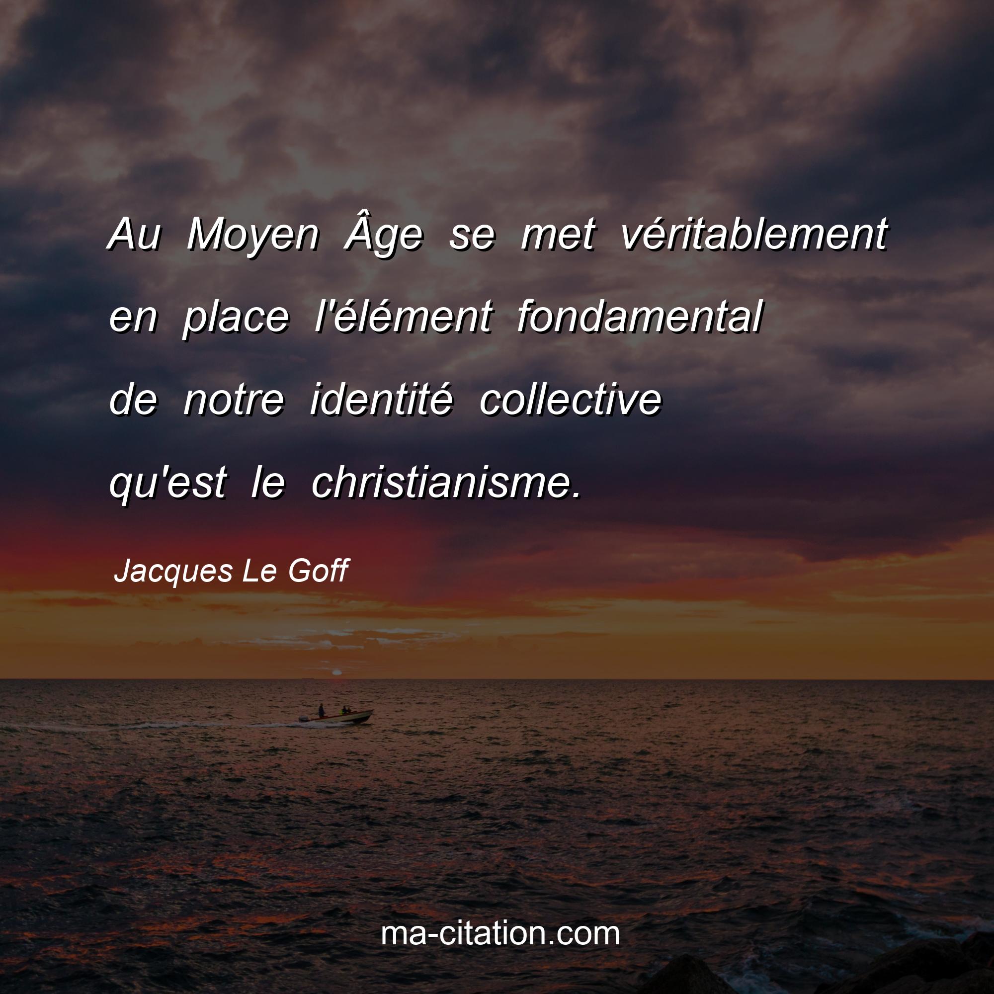 Citation sur la vie de Jacques Le Goff :Au Moyen Âge se met véritablement en place l'élément fondamental de notre identité collective qu'est le christianisme.
