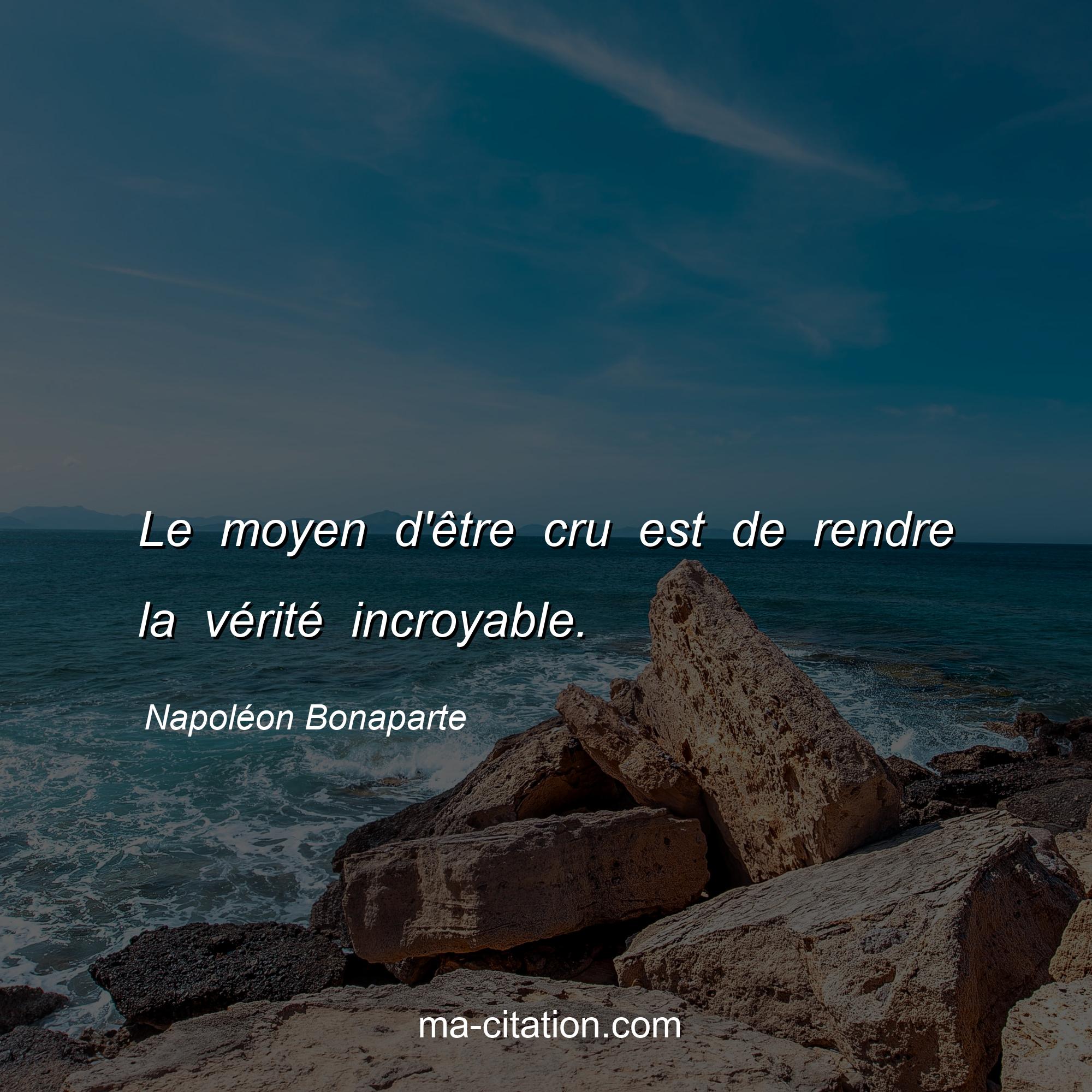 Citation sur la vie de Napoléon Bonaparte :Le moyen d'être cru est de rendre la vérité incroyable.